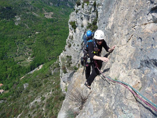 Via bella e non banale, possibilità di integrare. Scesi per cengia sino al colletto