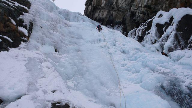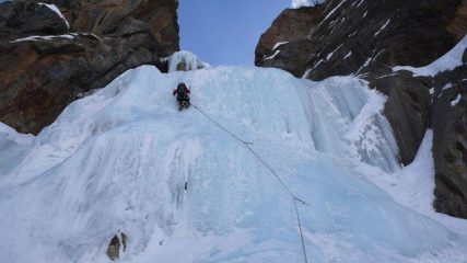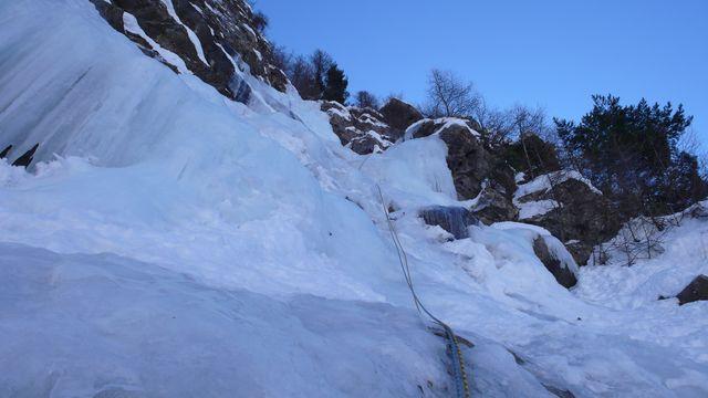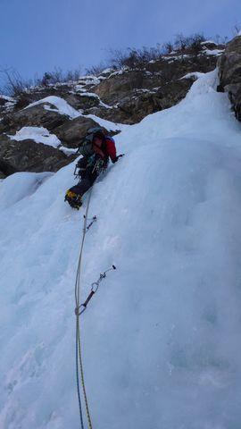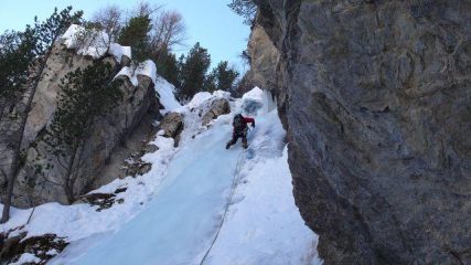 Primo tiro magro, quindi canale di neve e visione delle due colate, secondo e terzo tiro in ottime condizioni, il quarto molto abbattuto è coperto…