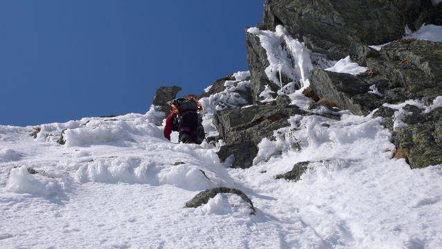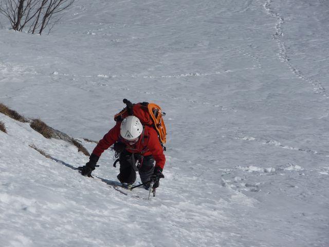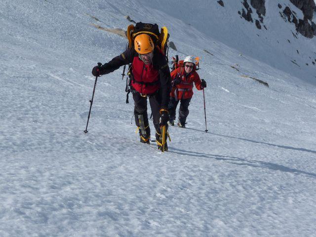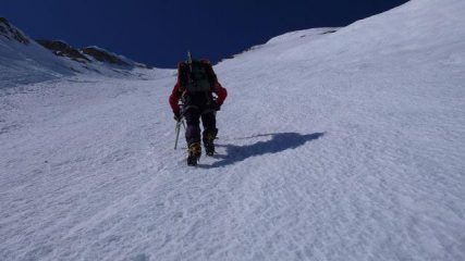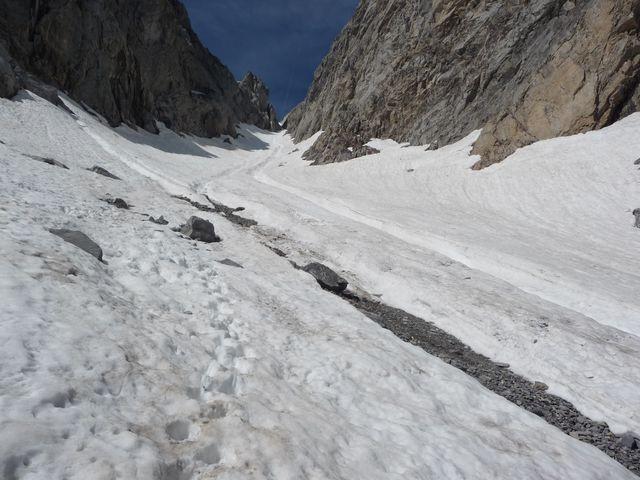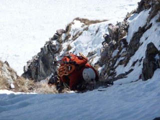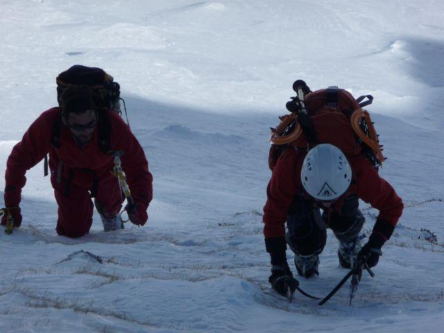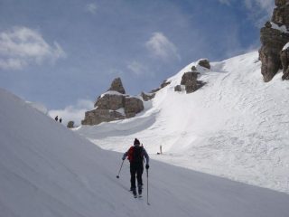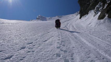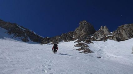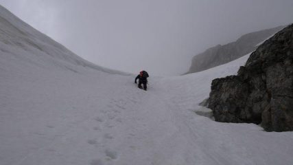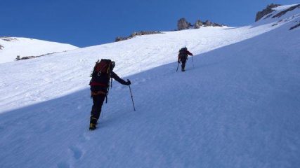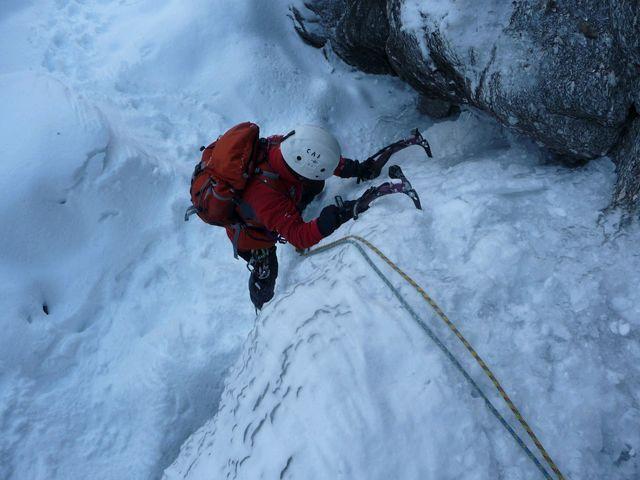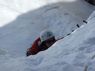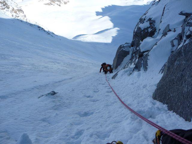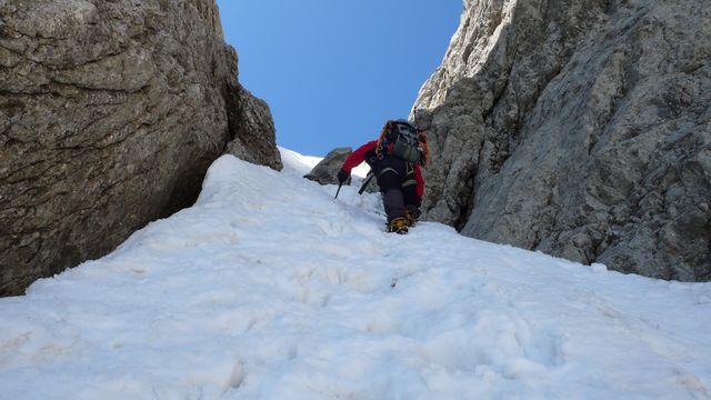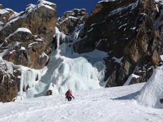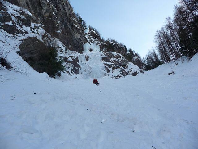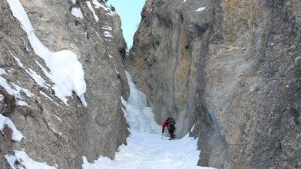 Avvicinamento reso meno faticoso da una buona traccia, il primo tiro corto e abbattuto conduce al secondo e ultimo (considerata l'abbondanza di neve nel canale…