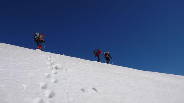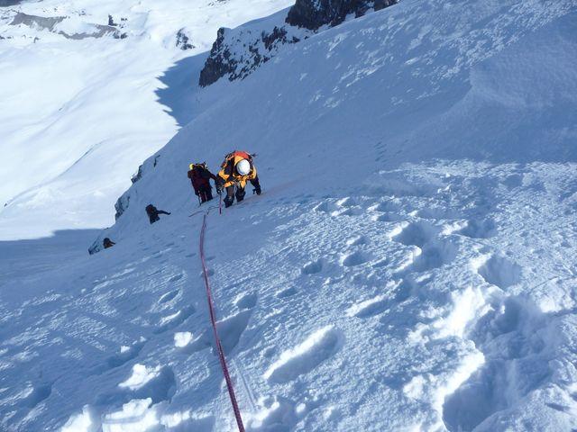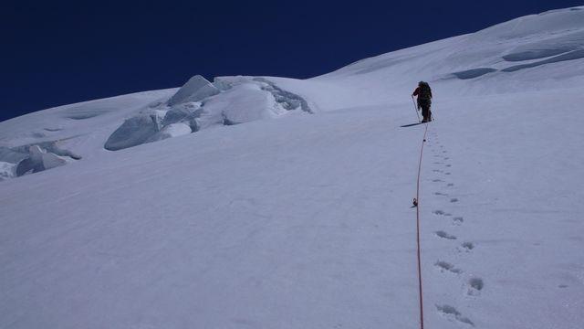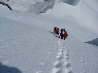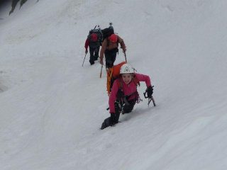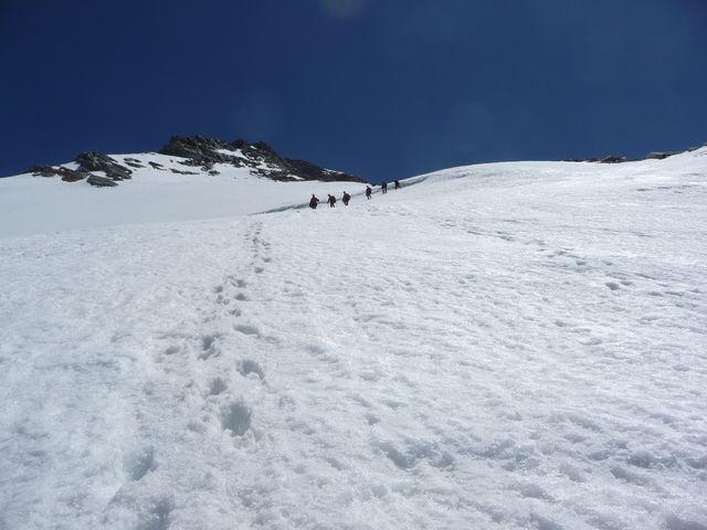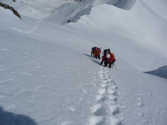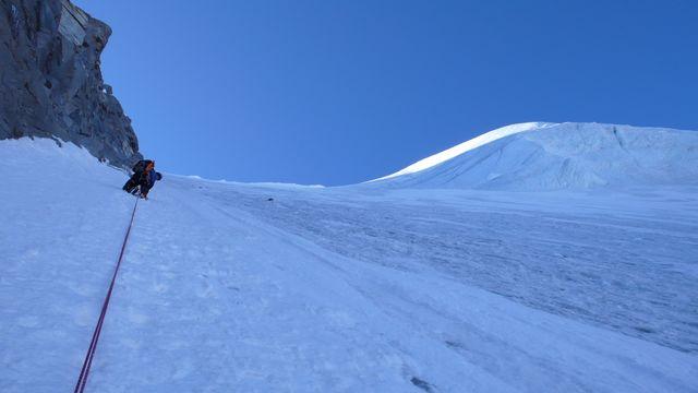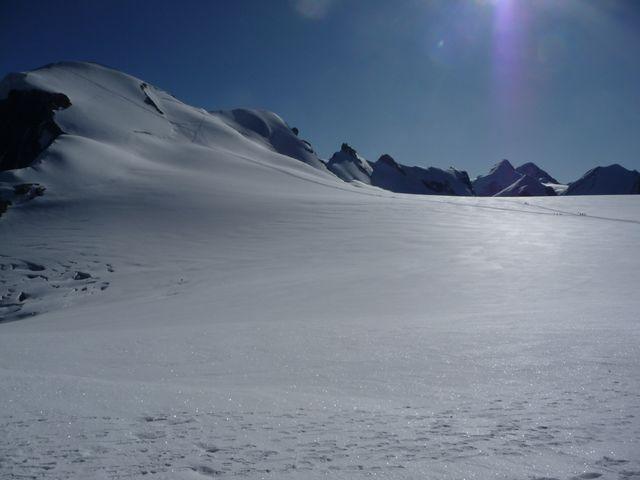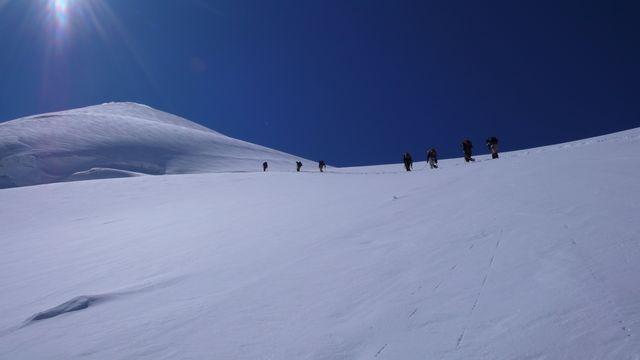 E' sempre bello arrivare in cima al Bianco, traccia battutissima anche se domenica c'erano solo sei cordate