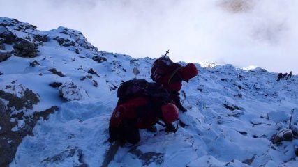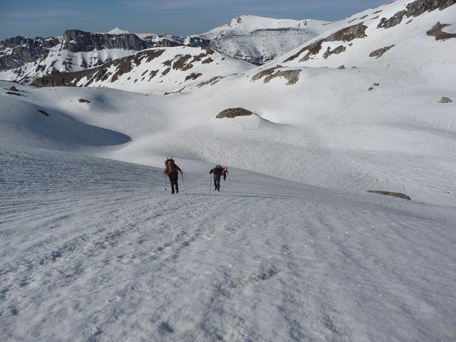 L'annunciato temporale del sabato pomeriggio ha ricoperto di alcuni cm di neve fresca gran parte dell'itinerario rendendolo sicuramente più suggestivo.Obbligatori i ramponi. Al mattino un…