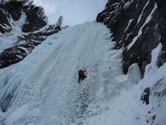 Primo salto ancora in buone condizioni sulla destra, bucato sulla sx, nell'anfiteatro via originale ancora abbastanza buona molto magra in cima, goulotte ben formata e…