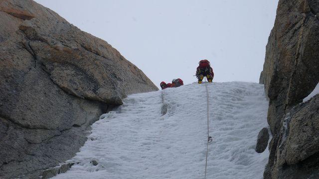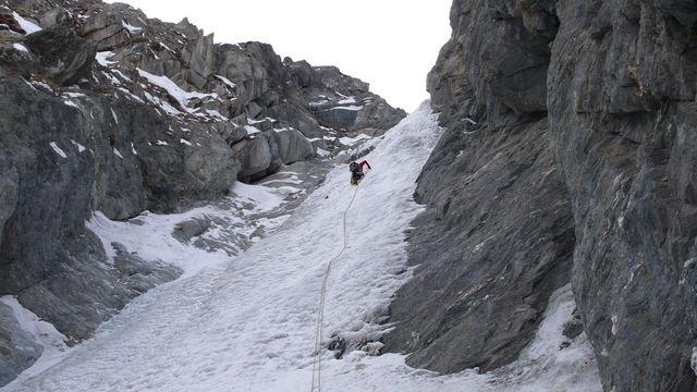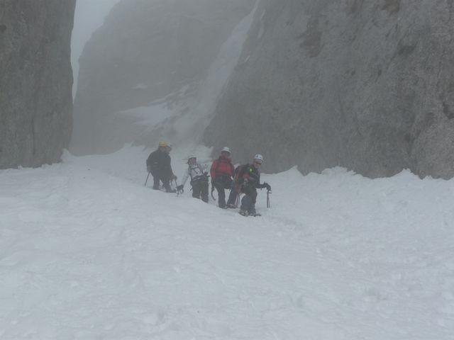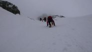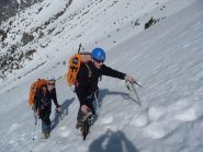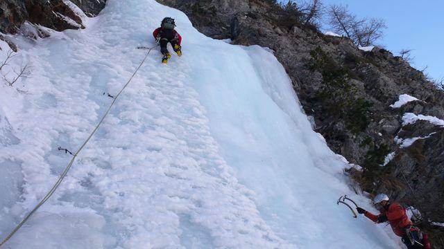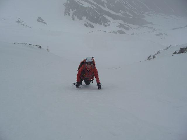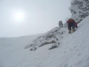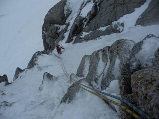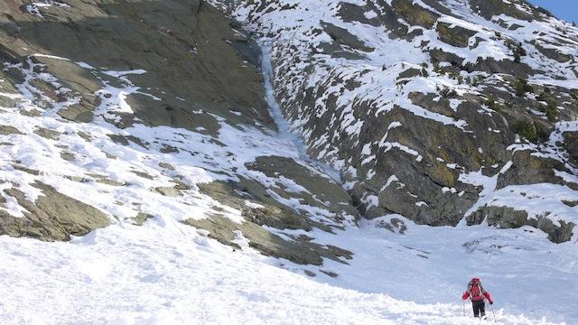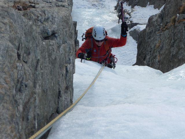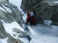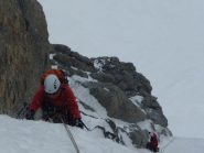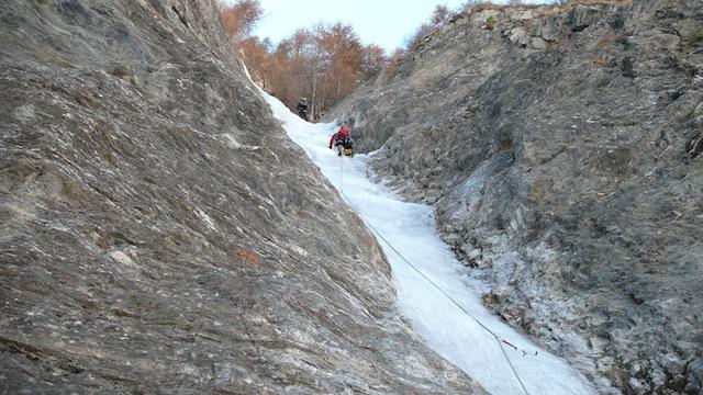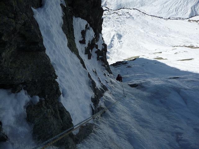 la più gettonata, insieme alla guolotte del martinet. oggi parecchio scarsa, ci sono alcuni buchi, parecchia neve già dal secondo tiro. La situazione in valle…