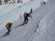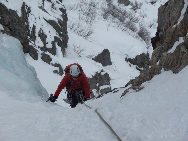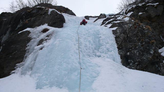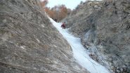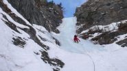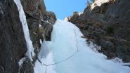 Bello l'avvicinamento, solo il tratto che porta sotto la goulotte è con neve non portante. Ghiaccio ottimo. Scesi in doppia sulla via