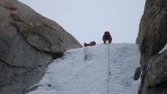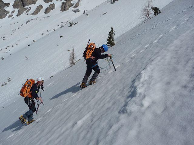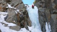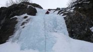 Grazie ad una traccia fatta dalla coppia davanti a noi con le ciaspole raggiungiamo l'attacco sprofondano soloun poco. Bello il primo tiro, sulla destra ghiaccio più…