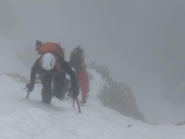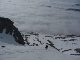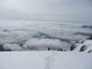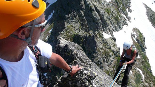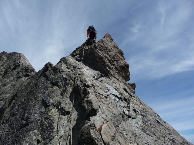 Cresta molto larga e battuta, gradinata anche nel canalino dove ci sono i cordini per la doppia. Panorama ed emozioni mozzafiato.