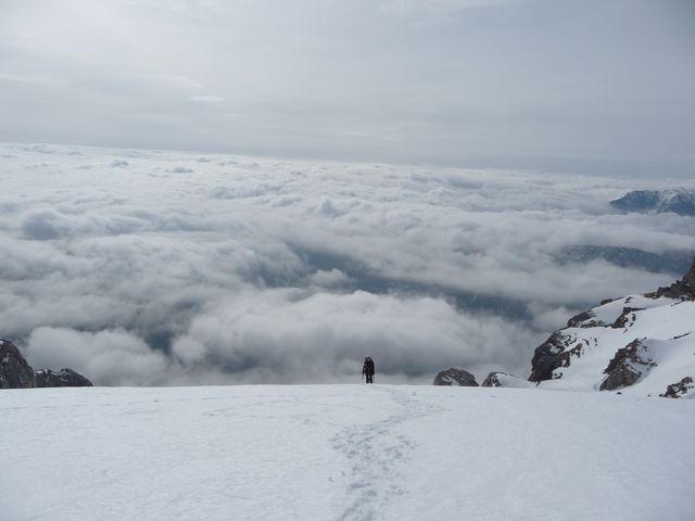 Partiti dal rif teodulo, ghiacciaio in perfette condizioni, traccia evidente sino al bivacco. Cresta in perfette condizioni, sia come neve che come rocce, grande affollamento…