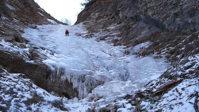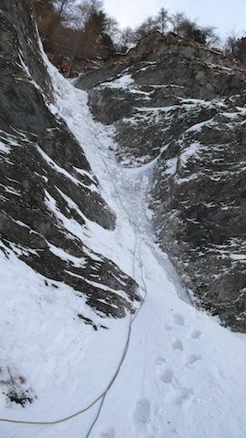 Cascata formata, magra e umida in alcuni punti, ma l'assenza di neve permette di risalire per alcuni tiri divertenti salti di ghiaccio. Il ramo di…