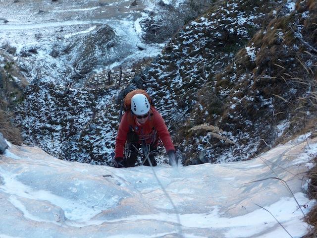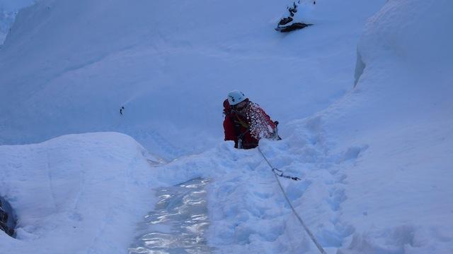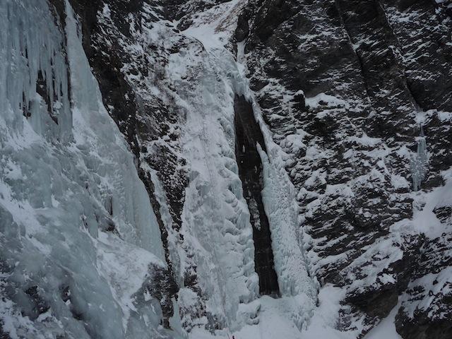 Ghiaccio bagnato, la goulotte grondava così abbiamo optato per quella a fianco con ghiaccio buono. Simpatica colata , scesi a piedi sulla six disarampicando su…