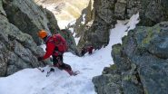 neve da col del pas sino all'attacco del canale non sempre portante. Savonesi con uscita su rocccette, torinesi in condizioni e con traccia dal Garelli,…