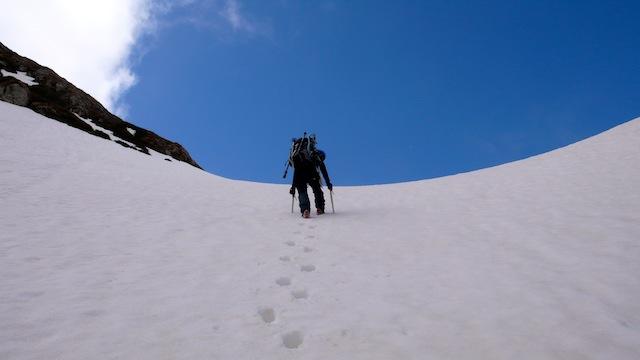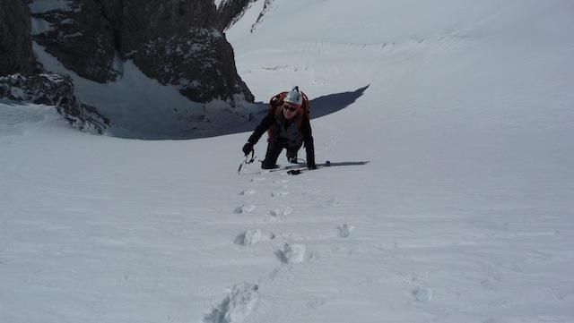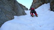 Partiti alle 2,30 dal pian delle mosche trovata la prima neve a quota 2050 che ci ha portato sino all'attacco del canale. Neve durissima,…