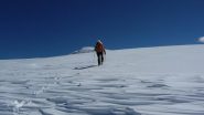 Partiti molto presto (3.15) dal rifugio Gnifetti per sfuttare il rigelo arrivati in vetta alle 7.30. Temperature basse sino alle prime ore della giornata, poi…