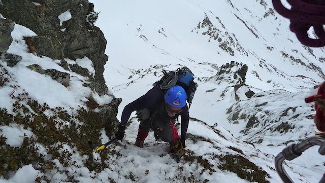 Mattinata con il sole, poi il previsto peggioramento....Primo tiro magro ma proteggibile, traverso su ghiaccio bagnato e sosta su chiodi, infine muretto finale...scesi in doppia info…