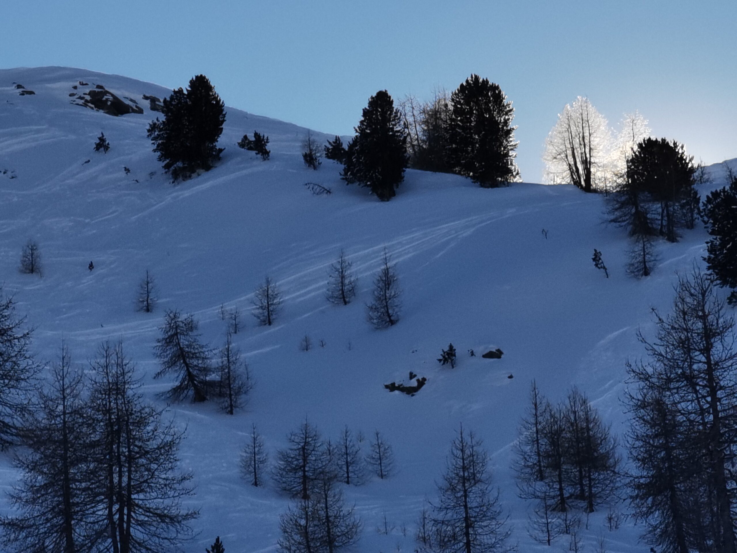 Mattinata, serena polvere in alto e sotto farina, sceso presto, molti sul percorso