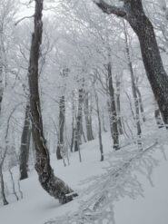Impianti chiusi, risalito nel bosco di faggi a sx del tracciato scistico, poi su terreno aperto fino alla sella che affaccia sul versante toscano,…