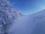 Ancora Monte Penna, neve caduta fino a ieri. Oggi assenza di vento e temperature in aumento. In alto rimaneggiamento da vento ma farina sciabilissima, in basso.. ancora…
