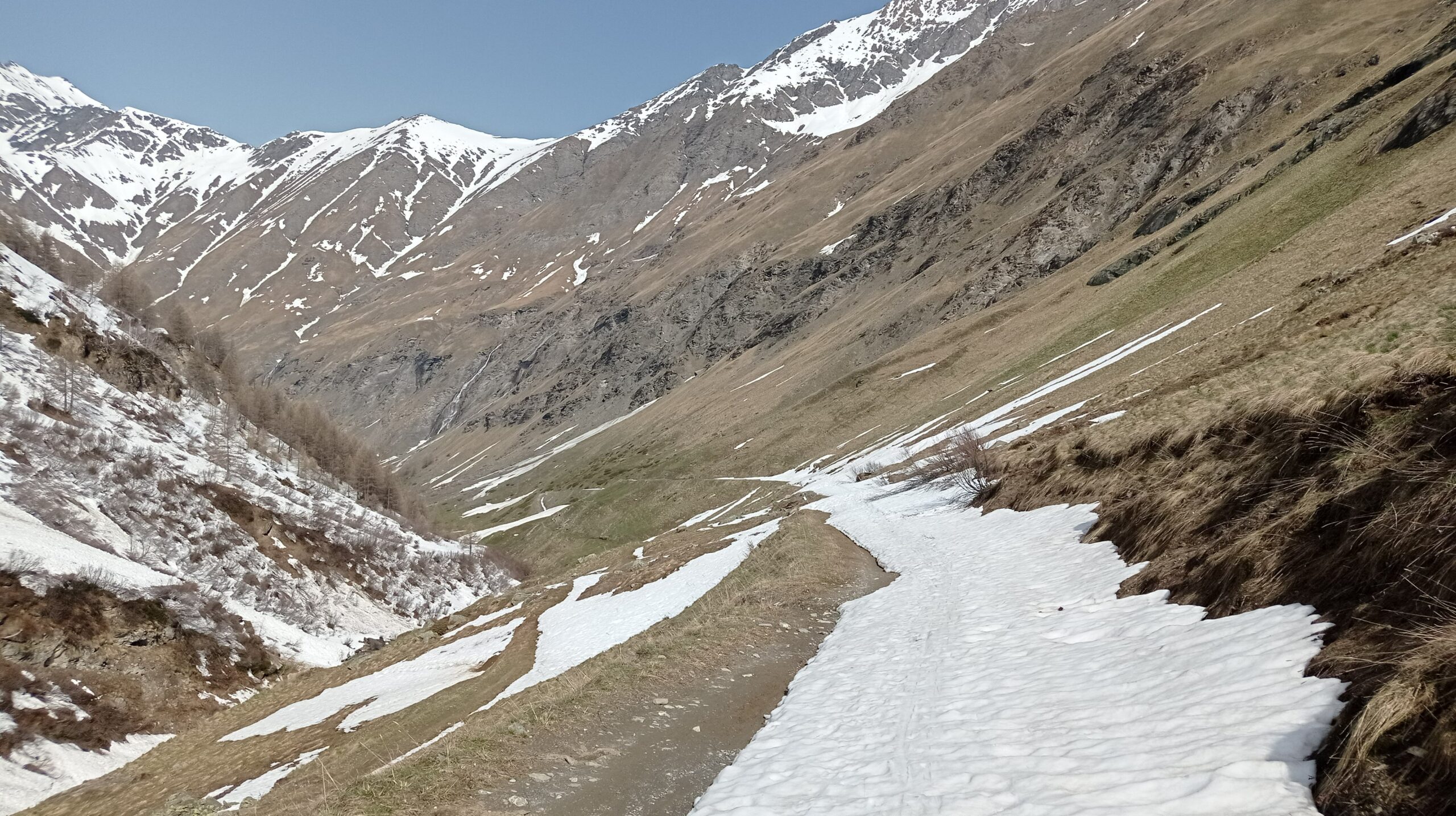 Si calzano gli sci alla fontana, vicino alla diga. Si tolgono dalla fine del lago fino al superamento dei primi 2 tornanti (20 min circa),…
