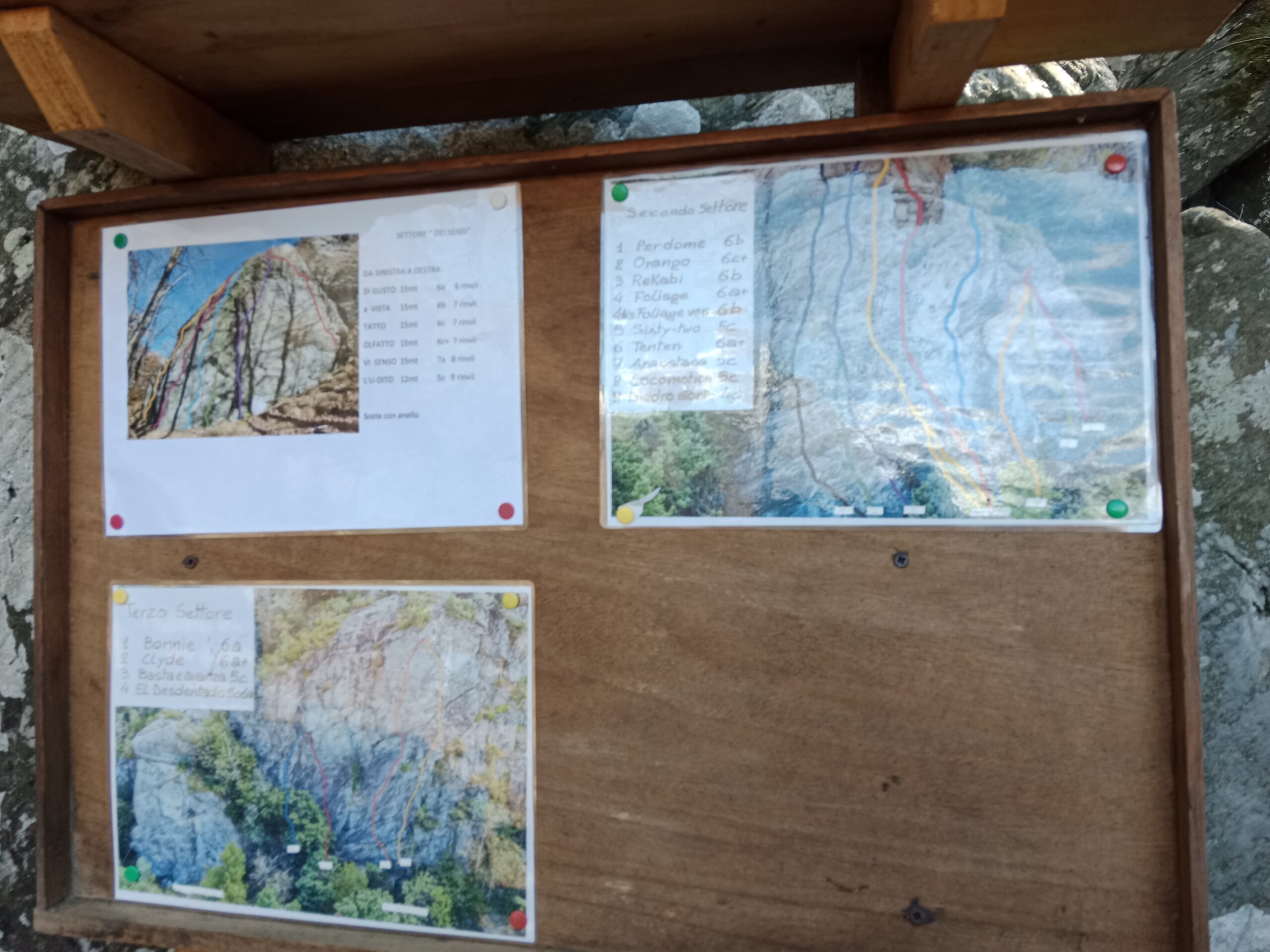 | marcoclimb | Il secondo tiro , una striscia asciutta tra le colate d'acqua. Comunque molto bello | marcoclimb | La parte destra della Falesia, quella con i tiri più facili. | marcoclimb | Salendo il divertente terzo tiro | marcoclimb | | marcoclimb | Sul Bricco Centrale | marcoclimb | Sui 5c del settore centrale | marcoclimb | La bacheca posta sotto le pareti