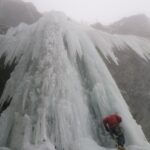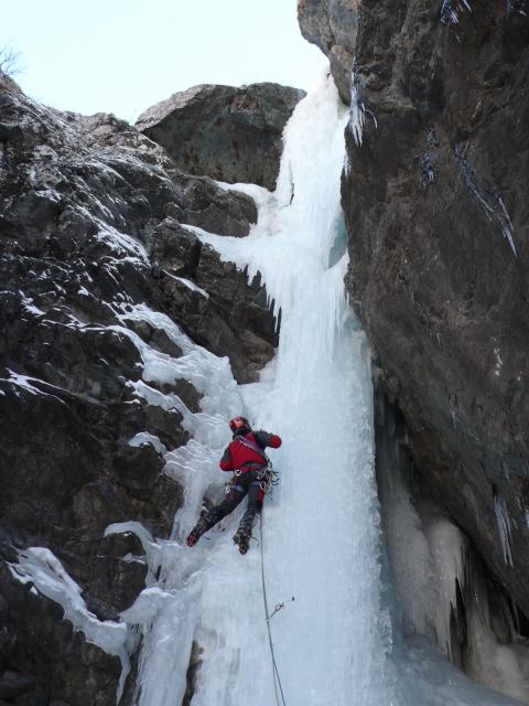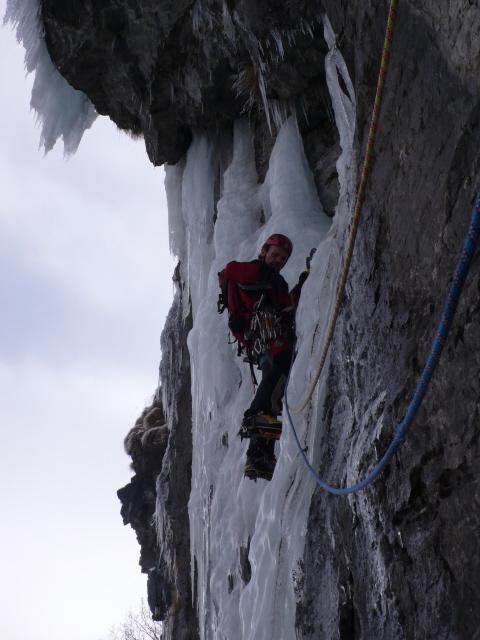 Sul primo tiro ghiaccio buono, doccia in uscita! Sul secondo tiro poco ghiaccio, molto delicato
