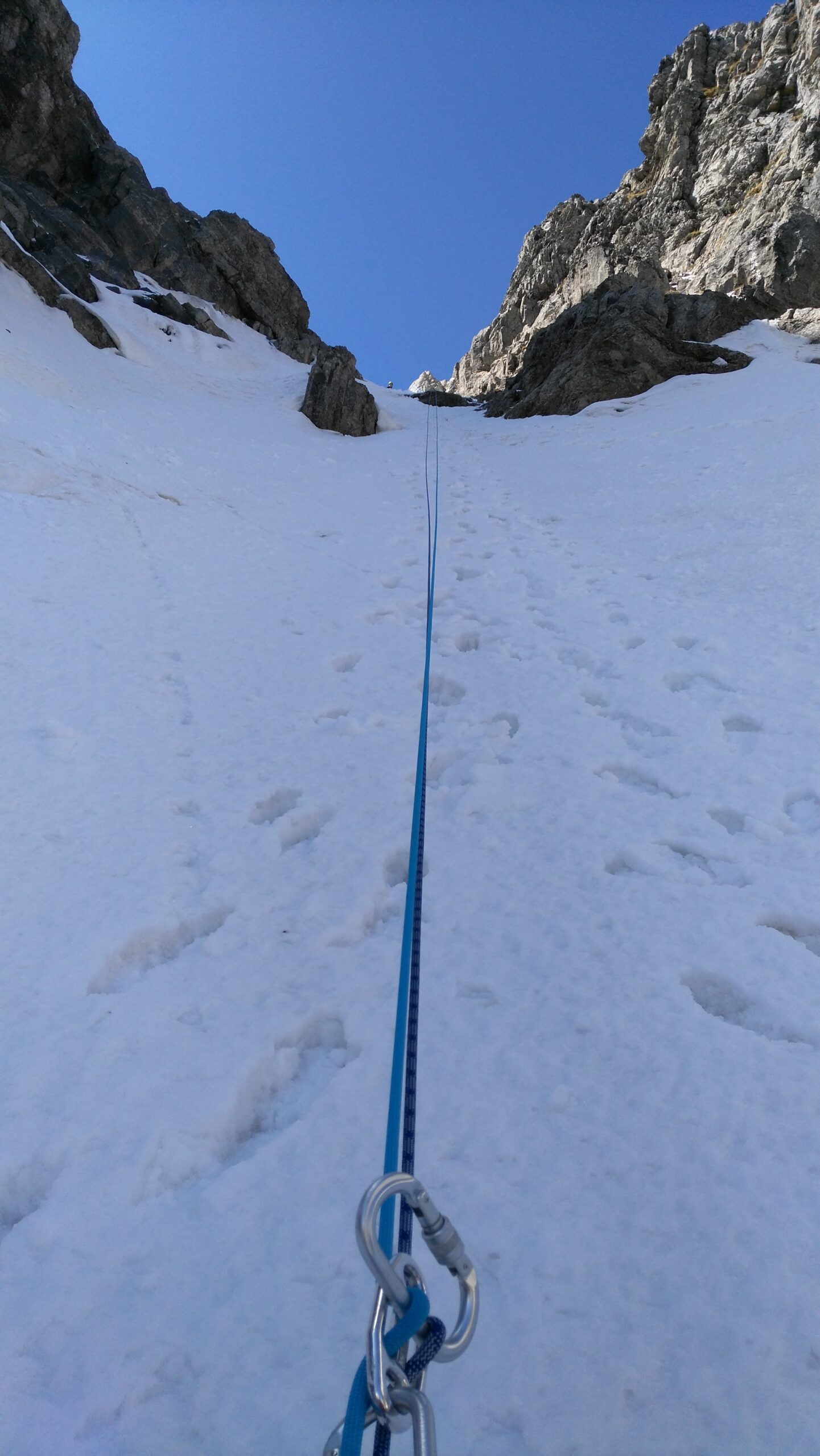 Partito in solitaria e dormito al rifugio Garelli! Bellissima serata, al mattino salito insieme ad altri ragazzi, canale in ottime condizioni, corda sul salto scoperta,…