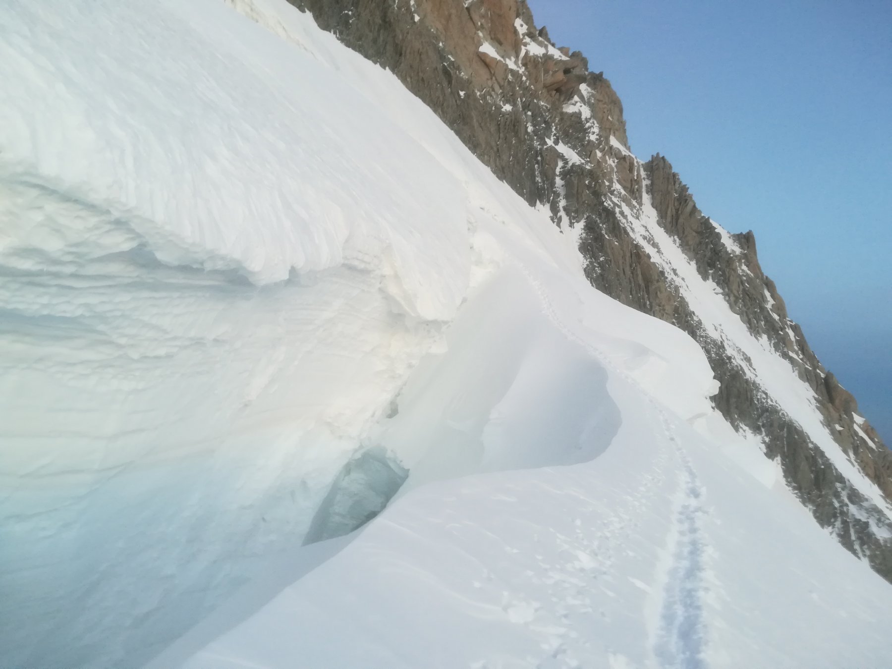 dovevamo fare la via dei tre monti ma causa mal tempo siamo partiti tardi dal cosmique, 7.30, siamo arrivati più o meno a 3900 mentre…