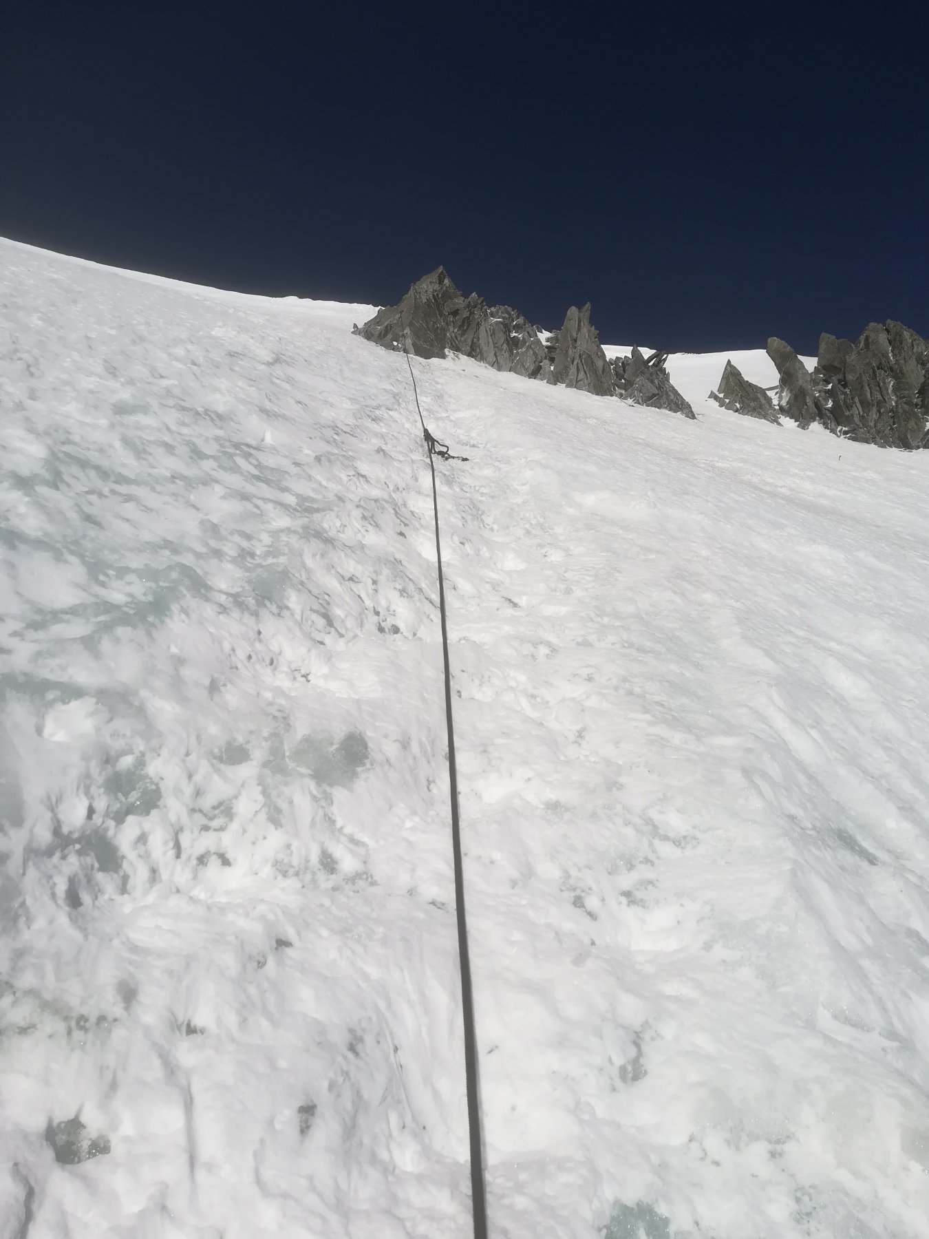 partiti alle due dal cosmique, alle sei eravamo al canalino del col del maudit, in vetta a mezzogiorno per via del caldo, mattina fredda, impressionanti…