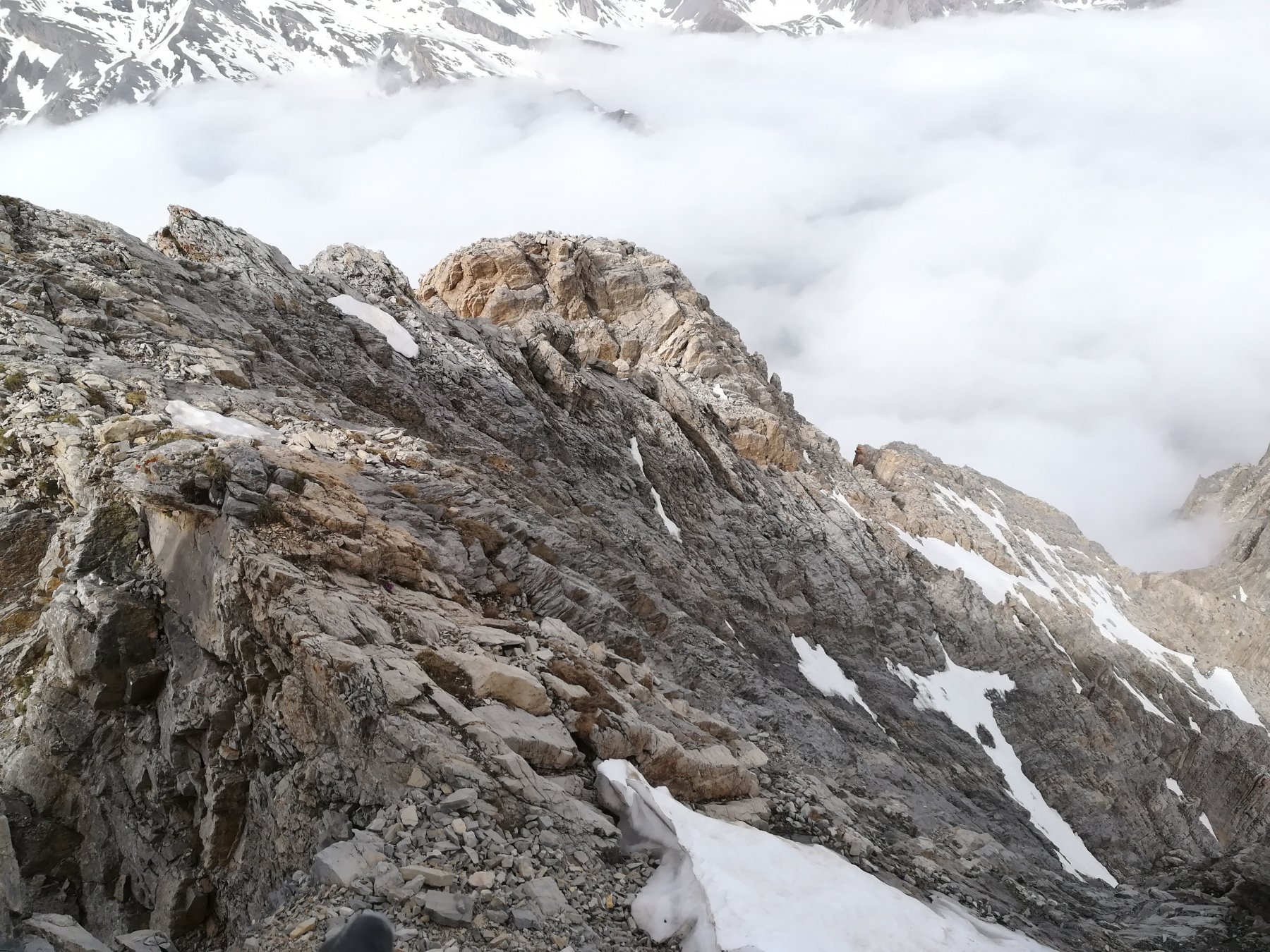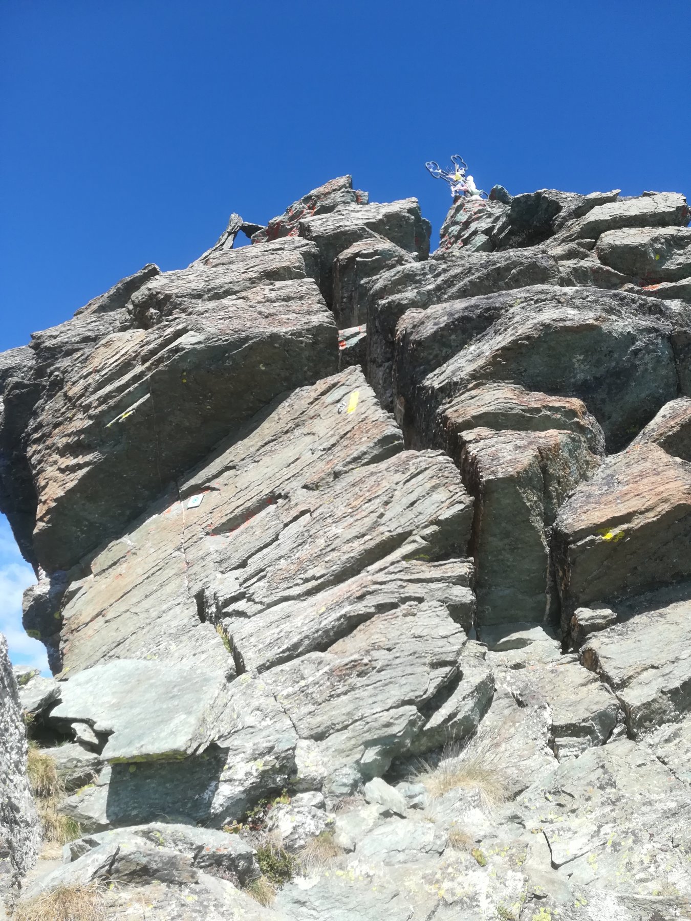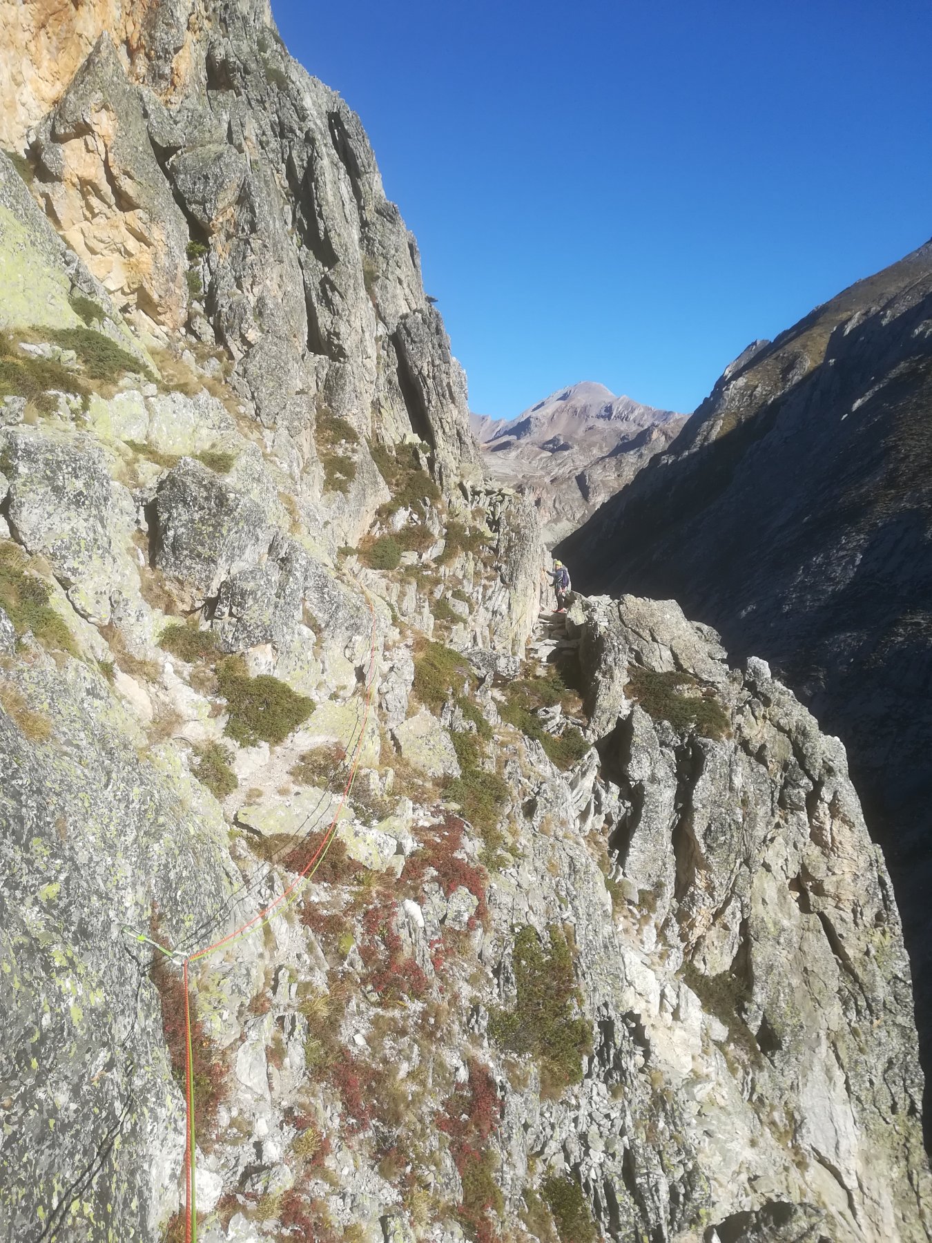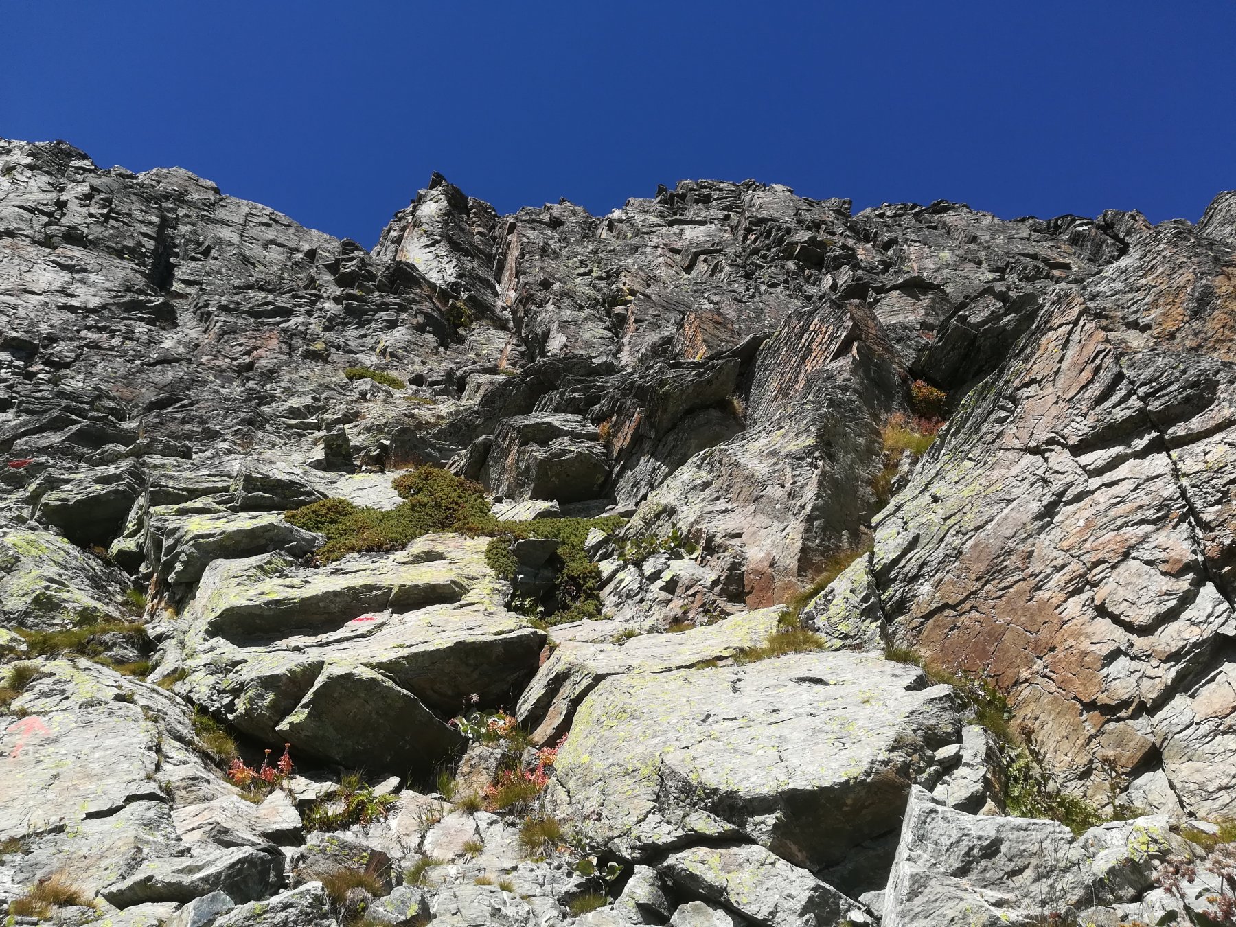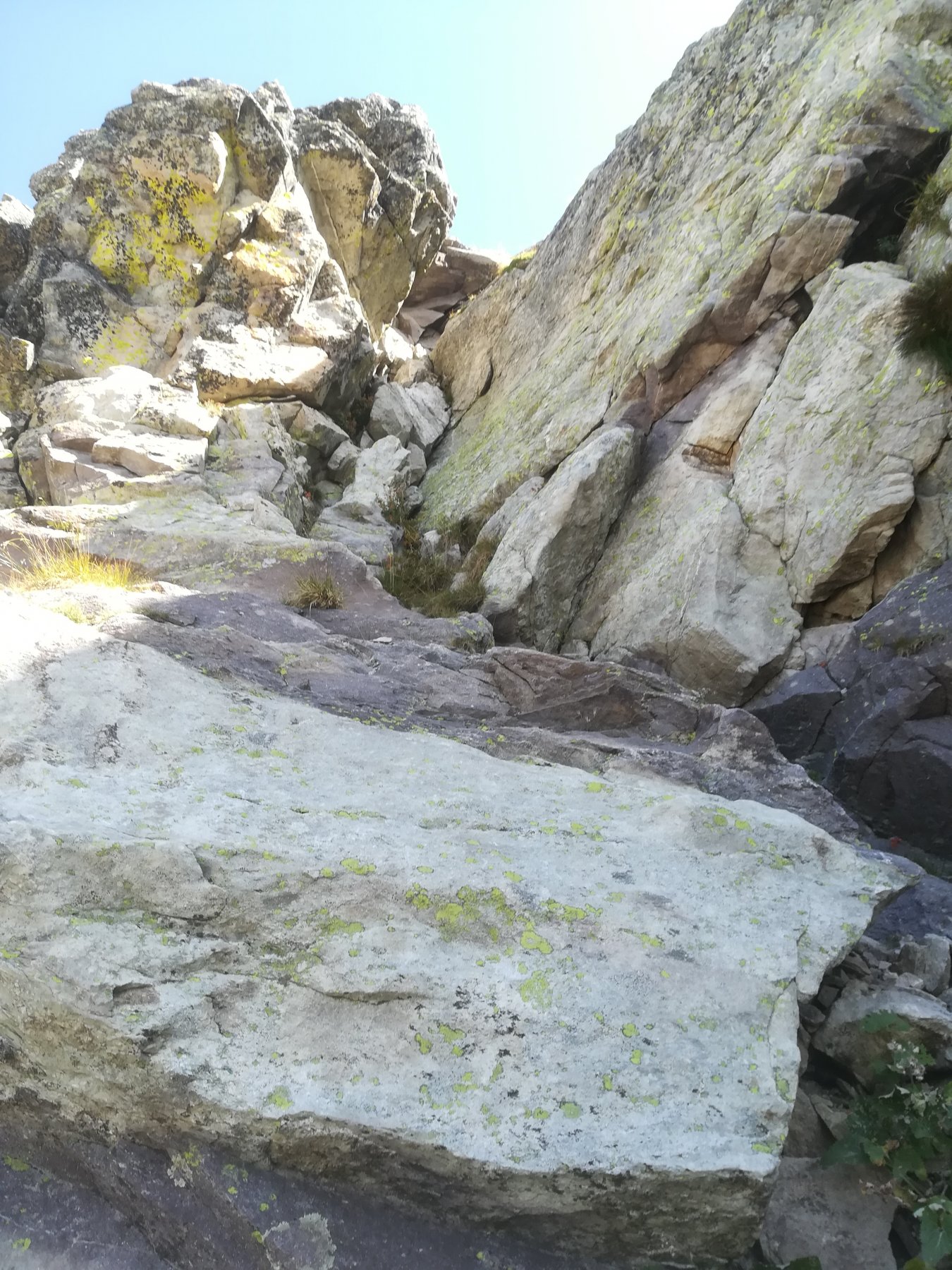 Bella cima, sulla cengia le pietre ti rimangono in mano, pericolo caduta sassi se c'è qualcuno sopra di voi, soprattutto nel ghiaglione, il ghiaglione è…