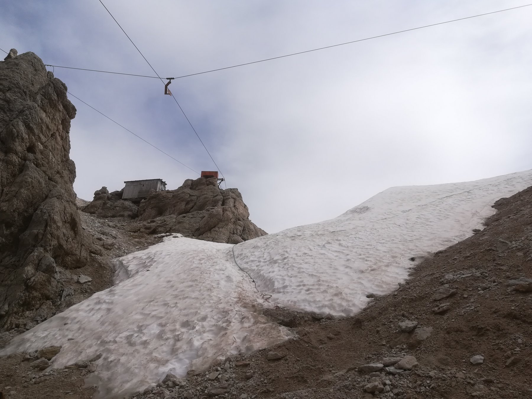Ghiacciaio per ora in buone condizioni, durerà poco visto il caldo, il pezzo di ferrata evita pochi passaggi facili, bellissima giornata, un sacco di gente…