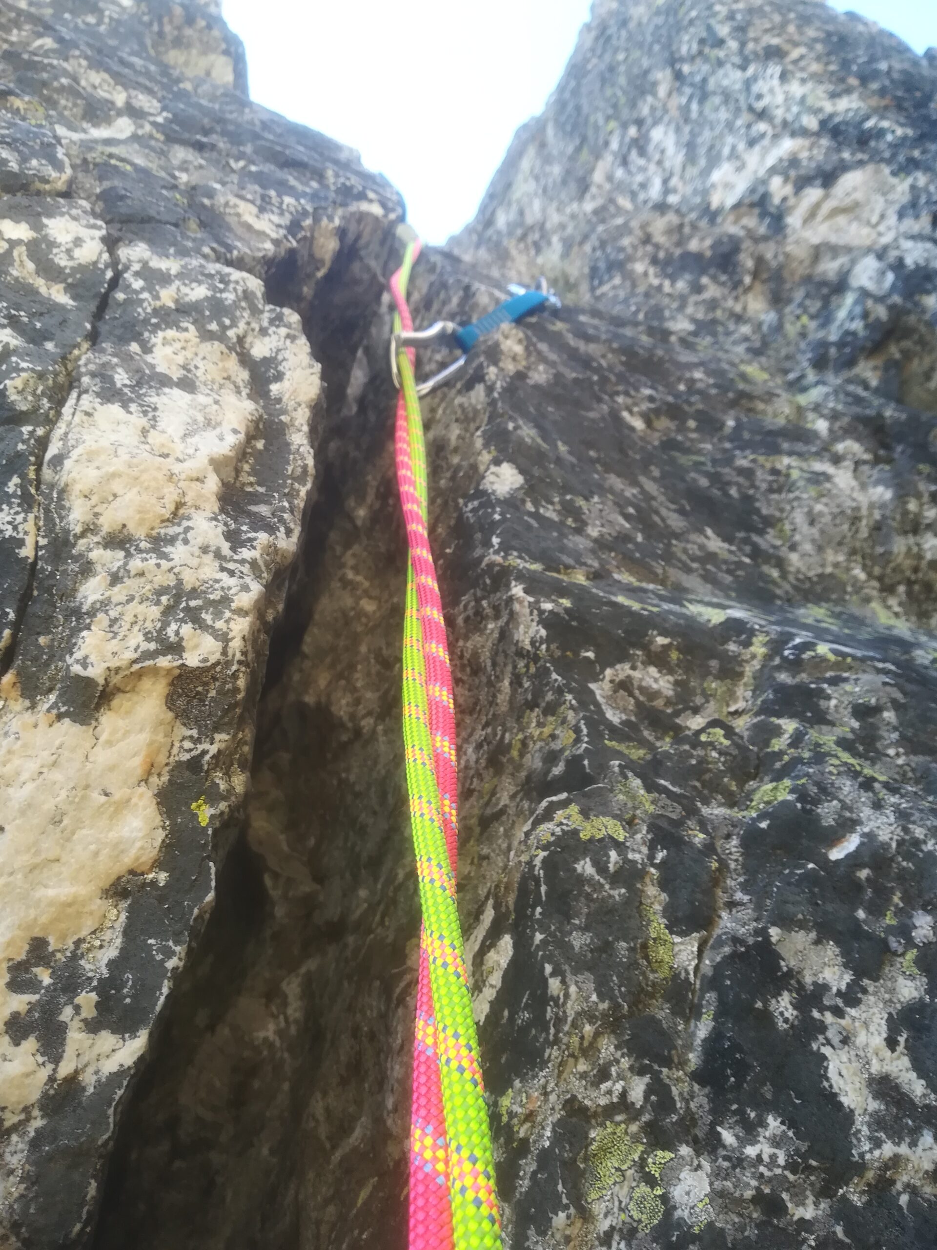 Bellissima via classica, terzo grado ma tosto da non sottovalutare, utili friends, fettucce e cordini per integrare e proteggere i tiri, occhio a cosa muovete…
