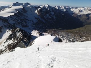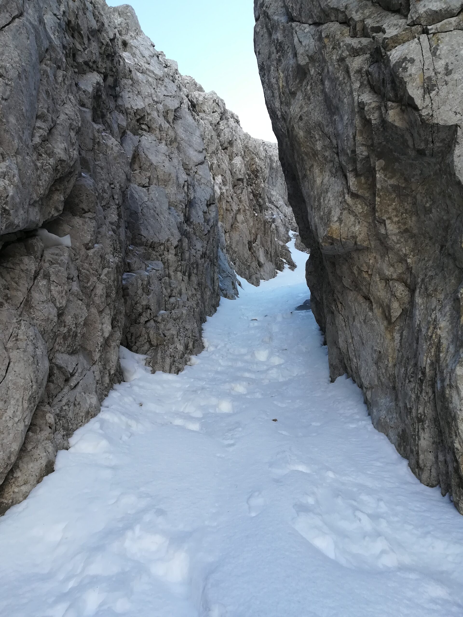 Sul sentiero/strada verso la diga ghiaccio, canale gradinato ad oggi e con neve ottima, sono sceso dalla cresta che ha dei punti da fare attenzione…