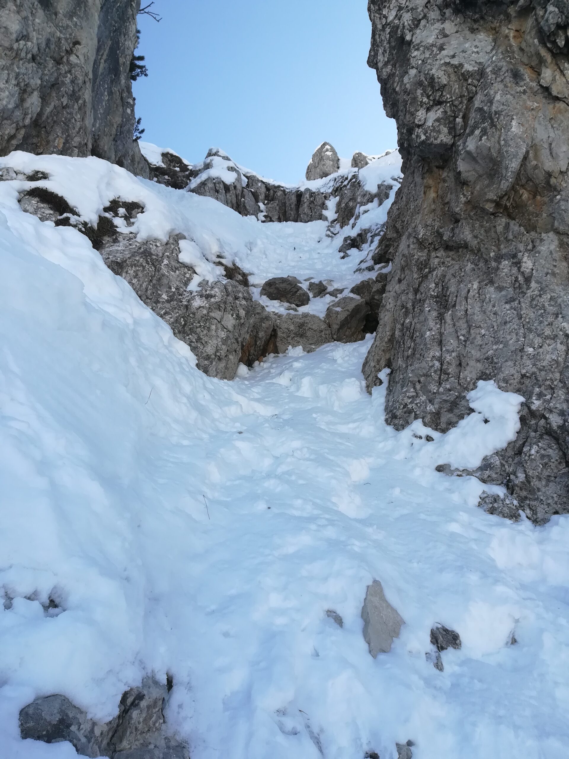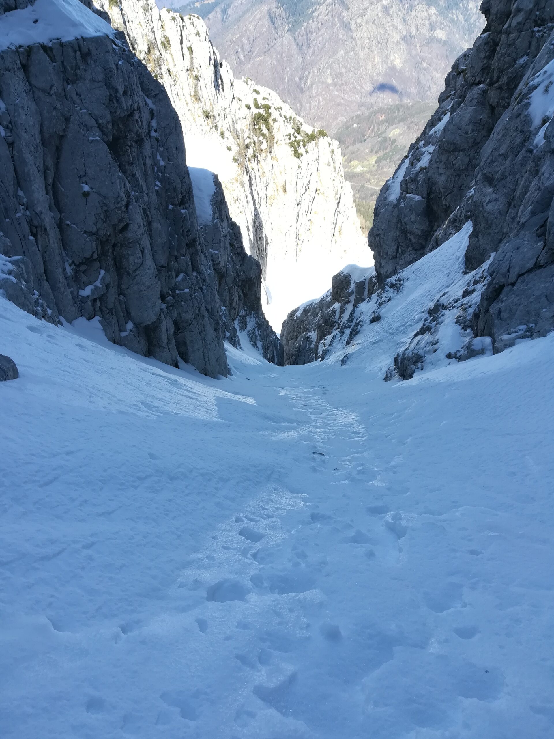 Canale in ottime condizioni, pessimo il traverso per arrivare alla cresta, discesa fatta faccia a monte, in solitaria