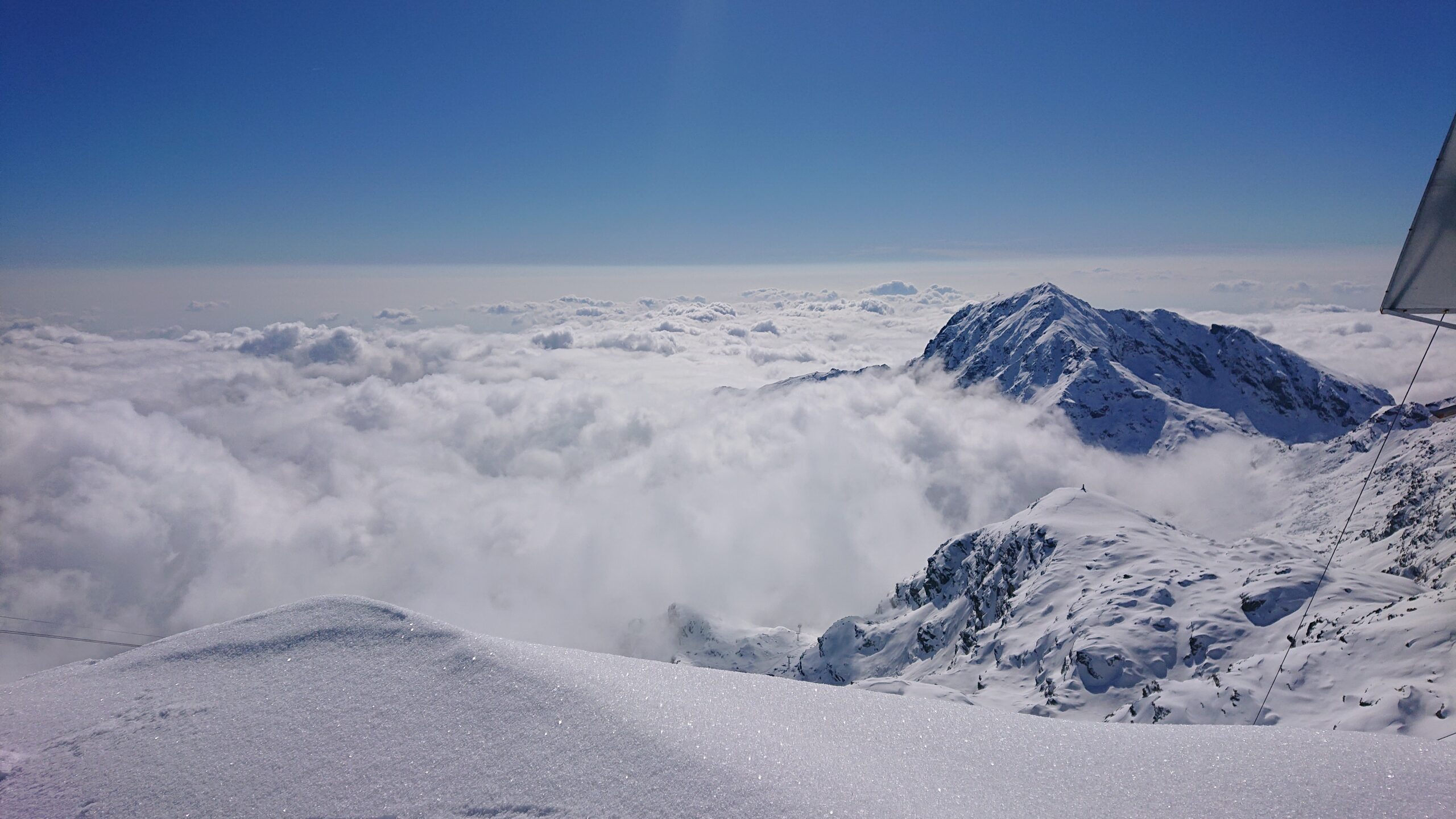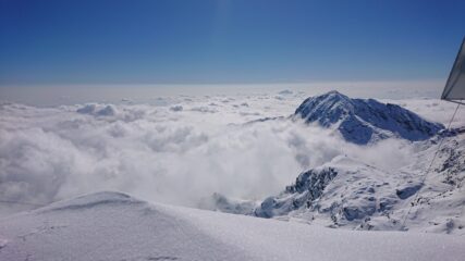 Percorso su oltre 1 metro di neve, in basso crosta portante (mattino) in alto mediamente dura e portante, giusto 10 cm di fresca qua e…