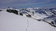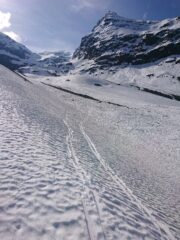 Neve dura in partenza, fatto il traverso alto dopo gli impianti su blocchi valanghivi, seguito all'incirca la traccia pubblicata fino al Lac Long poi puntato…