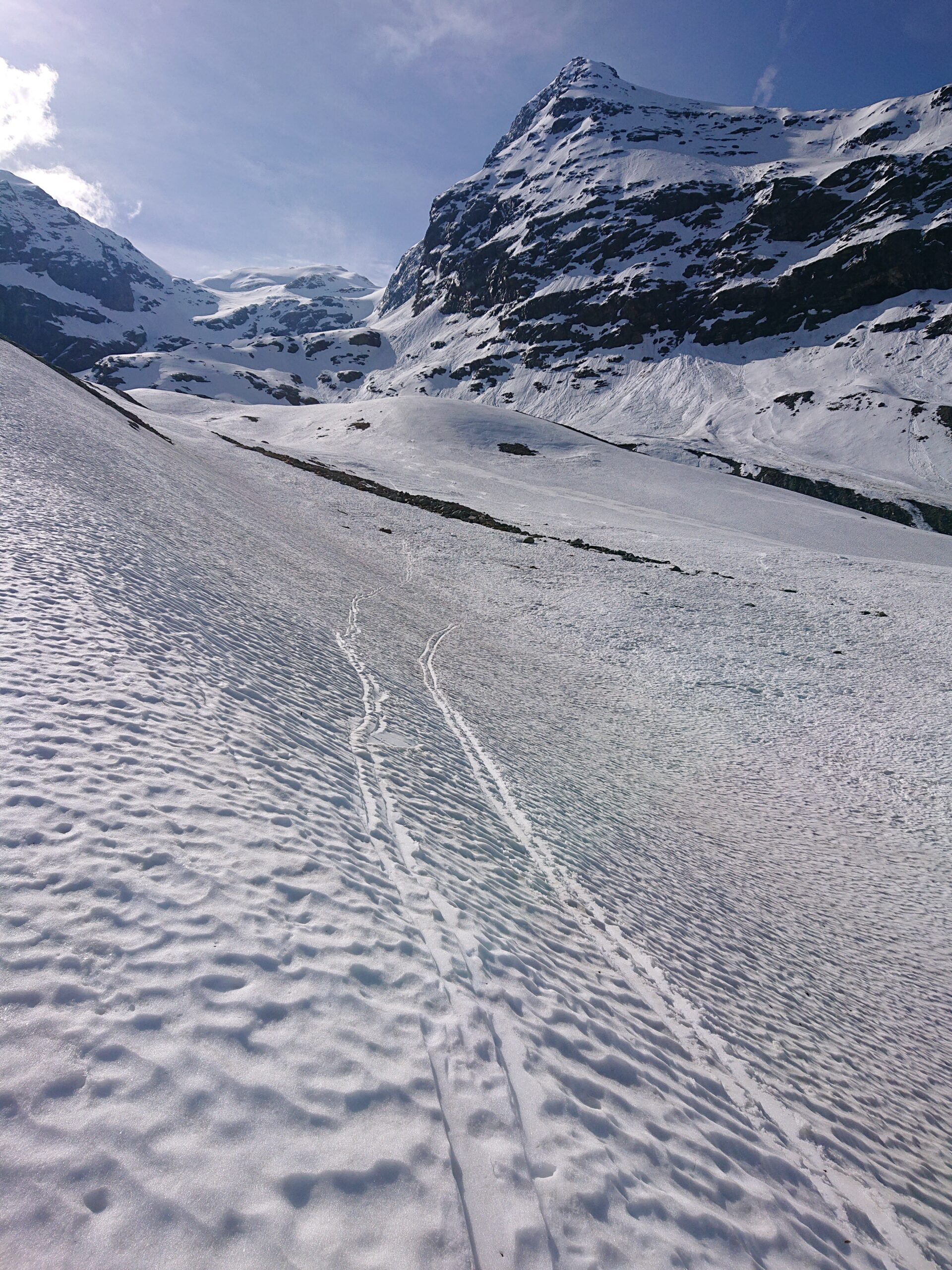 Da Planaval seguendo il vallone ci sono circa 200-300 mt lineari con chiazze di neve, il canale di accesso a Bonalex aveva neve dura (torrente…
