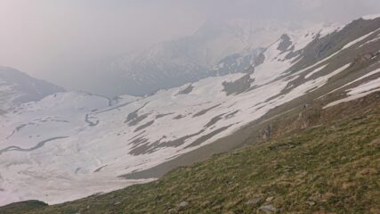 In discesa dal Camino, ripreso la via tracciata per pendio inizialmente agevole poi per passaggi più ripidi, al colle, leggera discesa per 10 mt circa…