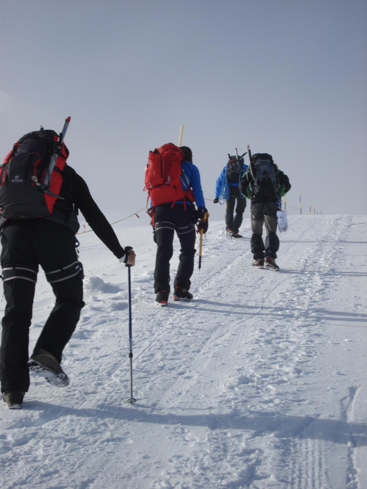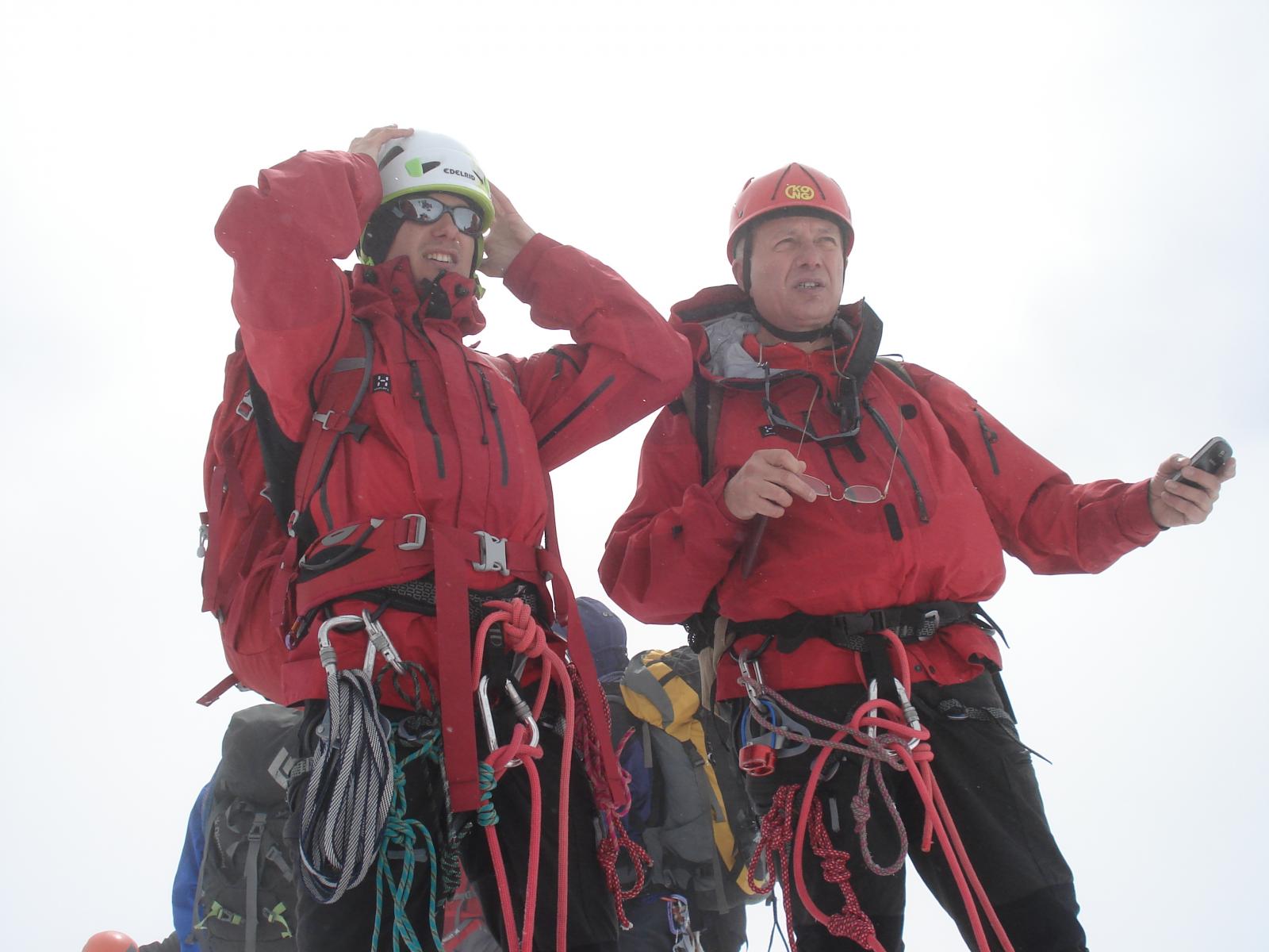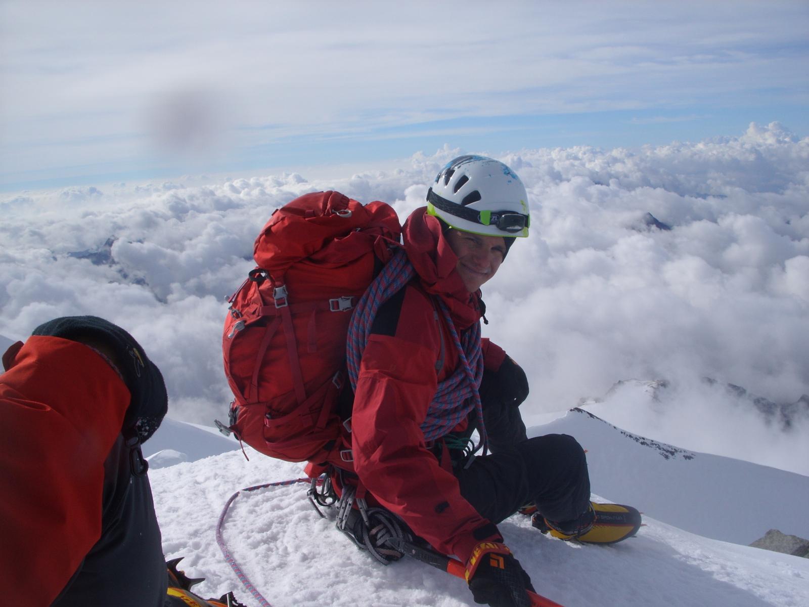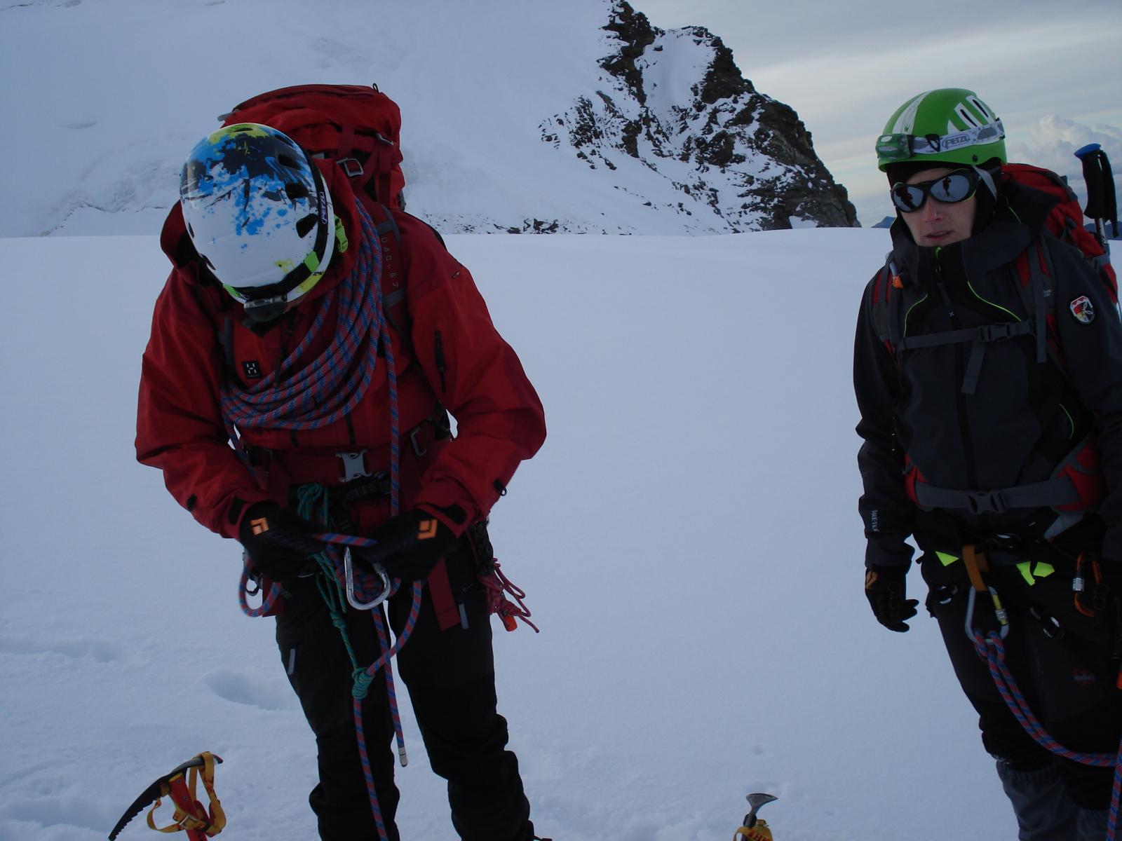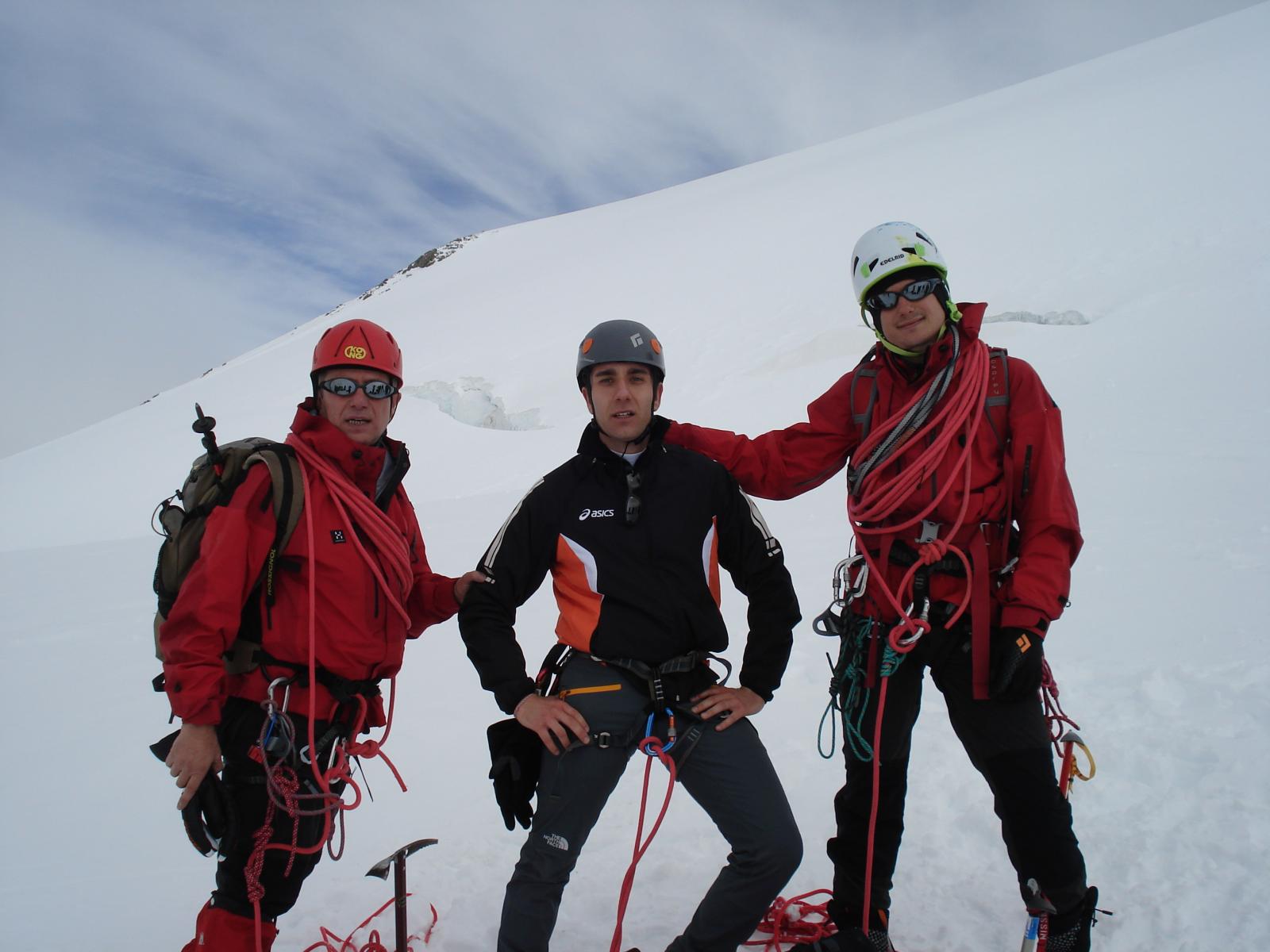 | mat-teo | Gianluca e Pietro in vetta avvolti dalle nuvole | mat-teo | la cordata in pausa prima della terminale | mat-teo | appena dopo il tunnel che taglia le piste che scendono dalla gobba di Rollin | mat-teo | più in alto delle nuvole! | mat-teo | pietro sta scaldando le gambe :-D | mat-teo | risalendo le piste di plateau rosa | mat-teo | in preparazione al parcheggio