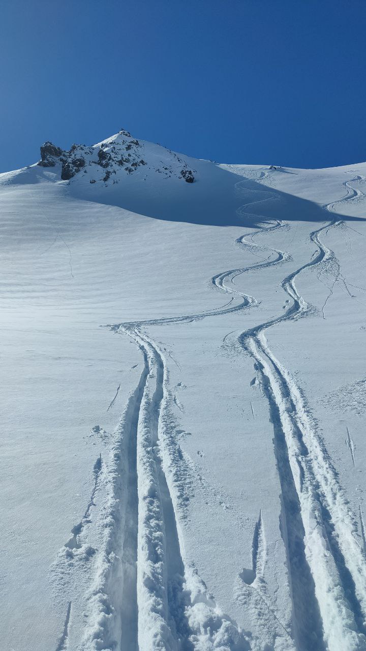 Nella parte inferiore ci sono circa 20-30 cm di neve che esposti al sole stanno diventando pesanti e con una leggera crosta. Nella parte alta fuori…