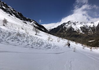 Si lascia l’auto a 2050mt, con 4x4 2150mt. Portage fino a 2350, consiglio di non salire sulla “strada” per l’alpeggio del Gran Miol ma mantenersi…