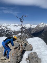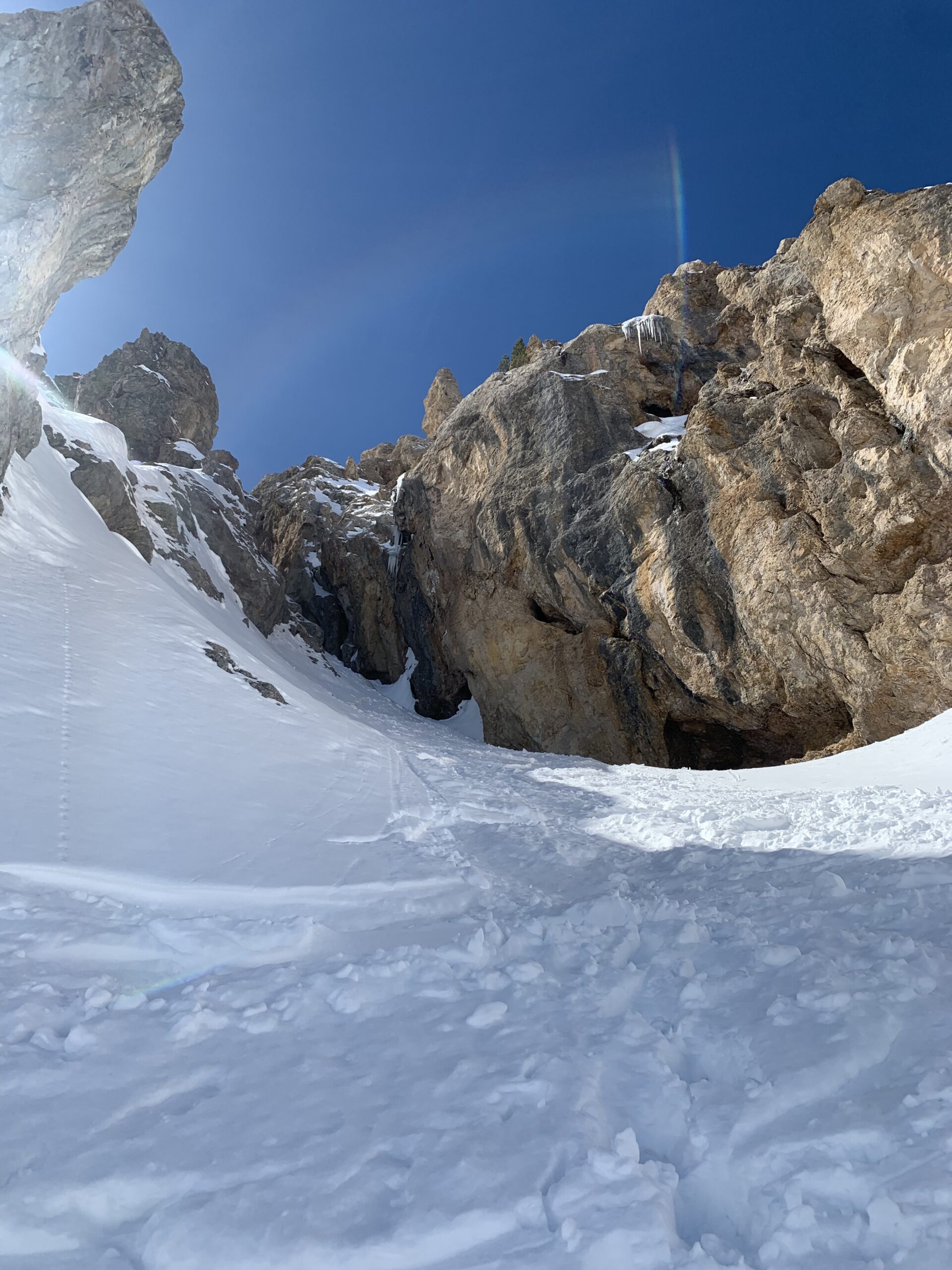 Sci dall’auto. Canalino con neve grippante. Sastrugi prima della vetta, ben sciabili. Per gran parte del resto della gita neve farinosa!
