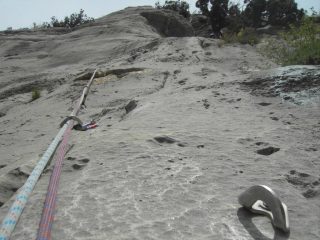 I primi due tiri son dati 6c, io credo siano sul 7a: L1: 7a. L2: 7a. L3: 6a+. L4: 3°, la sorpresa della via! L5: 6a+. La via è orientata a…