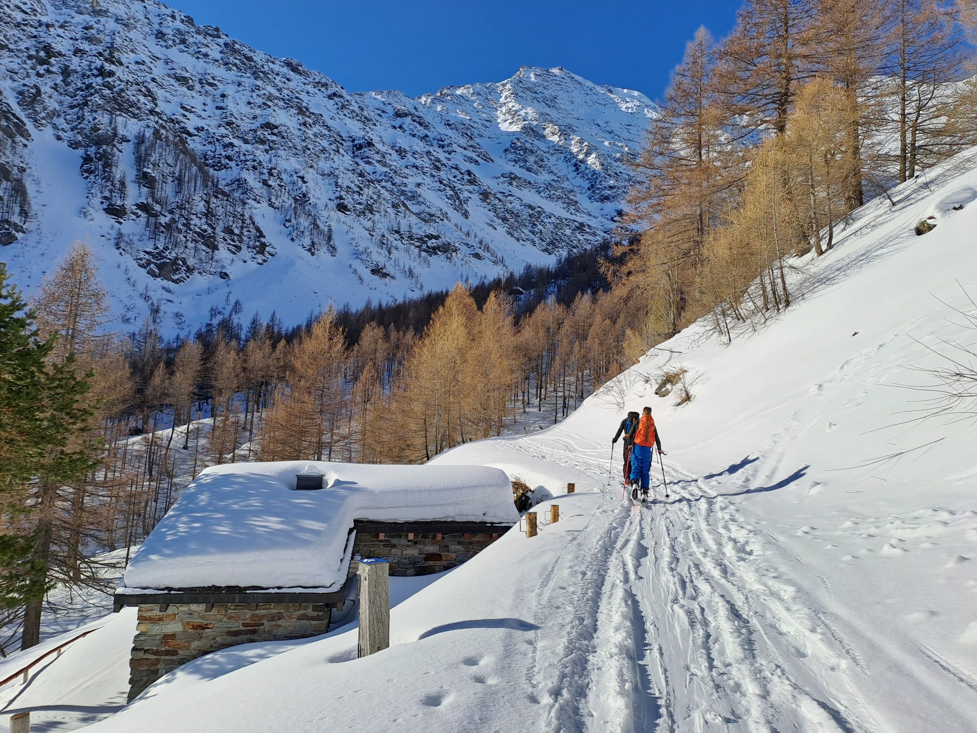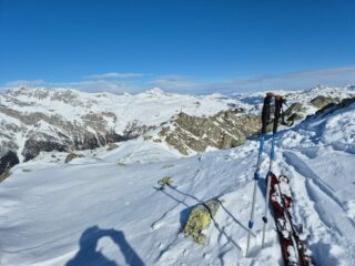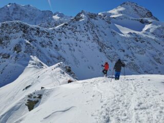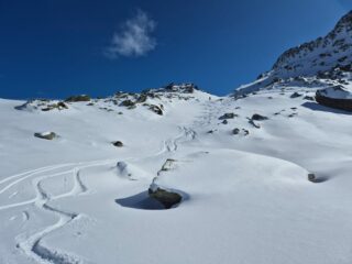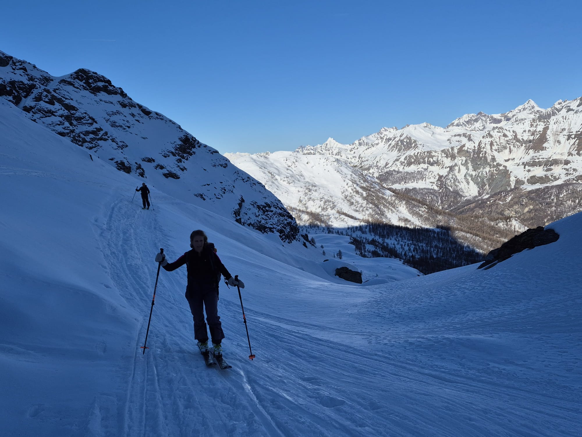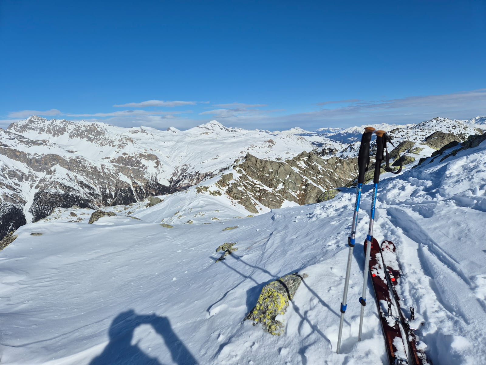 Bellissima gita in neve farinosa splendida, molta gente sul percorso ma gli ambi pendii e valletti hanno consentito di trovare neve intonsa. In basso ultimissimo…