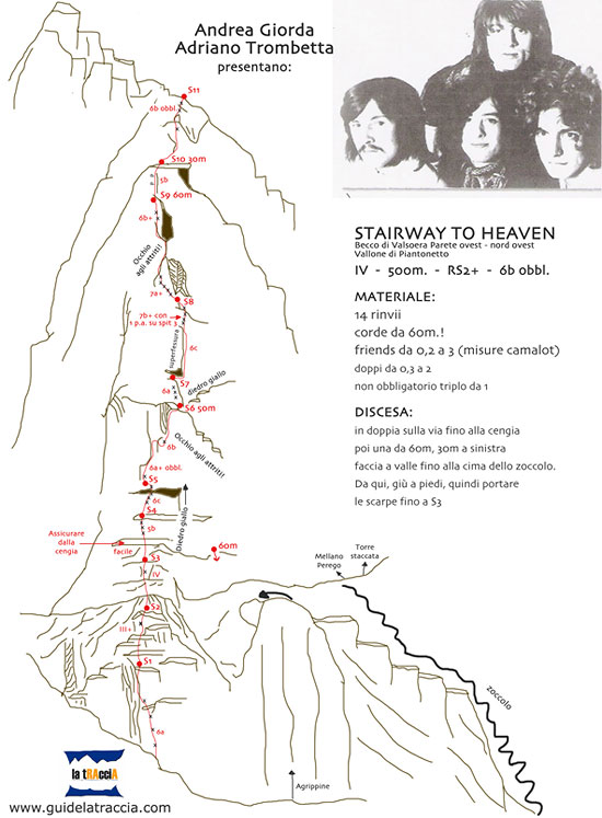 40-50 minuti di avvicinamento, scritta alla base e fessura del secondo tiro ben visibile da sotto. Necessaria una serie di friend, doppie le misure medie.…