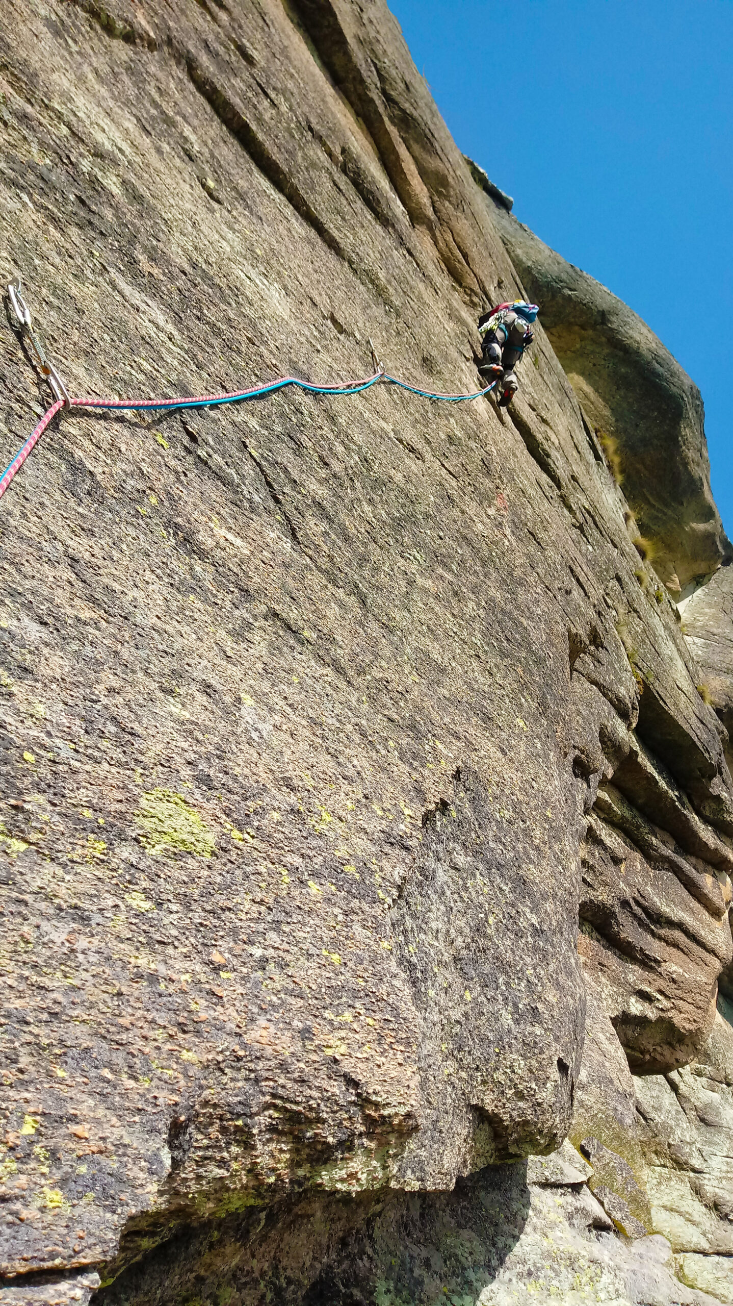 | mauriziodallachiesa | L4 nel tratto ancora arrampicabile di 6b. Il tratto successivo, da tutti superato in A0 (me compreso) a mio parere potrebbe trattarsi di un 7a quindi oltre la valutazione proposta ipotizzata (6c+) ma non ne sono certo.... | mauriziodallachiesa | Salendo L3 (6a+) e scoprire che alcuni spit indispensabili per la progressione in libera sono stati tolti.. (in relazione i dettagli, auspicando possa seguire un adeguato intervento di ripritino )