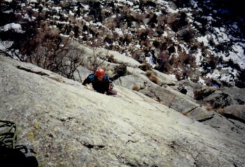 Roccia ottima. Presenza di neve all'attacco. Il tepore del sole sa di primavera...