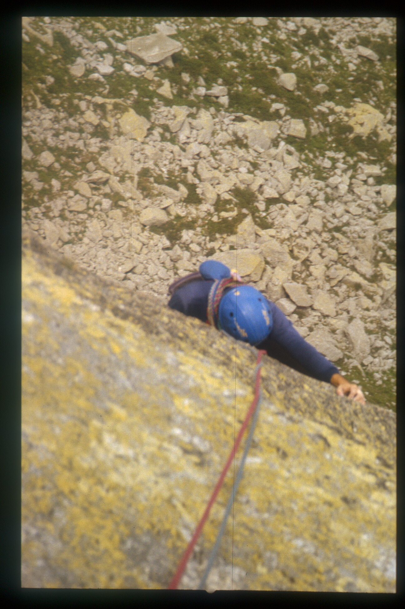 Via che risale diedri, fessure e placche su roccia meravigliosa.
