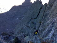 Bella via, la più logica, su roccia splendida. Alcuni tiri impegnano sia per la verticalità che per la difficoltà.