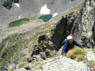 Via sportiva in ambiente di montagna. Scorci stupendi sui laghi di Ischiator. Via continua e verticale specie nei primi tiri ma tutto sommato protetta bene.…