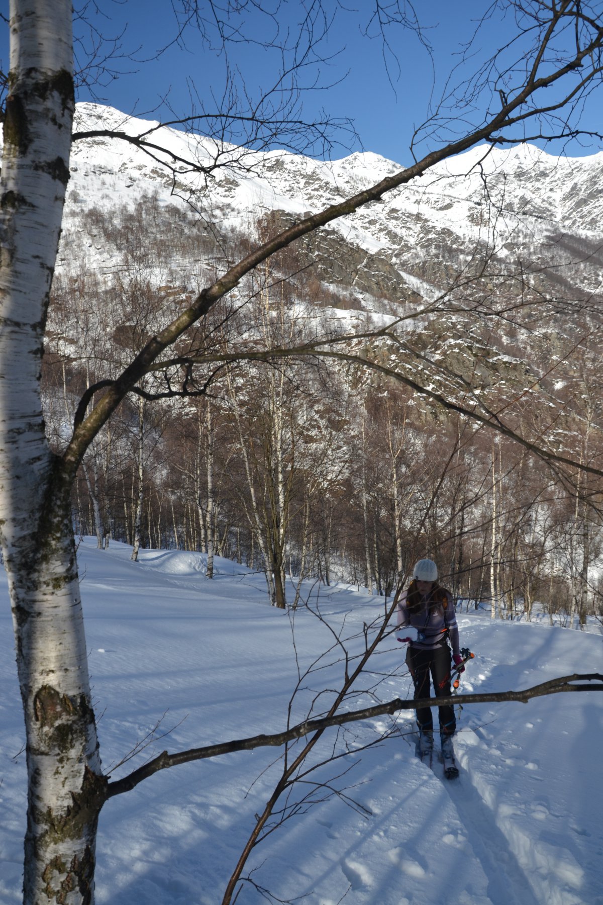 Umida ma sciabile in alto, croste molto fastidiose, non portanti a metà, molto umida ma nuovamente sciabile in basso. Ultimi metri sulla strada tra le pietre.