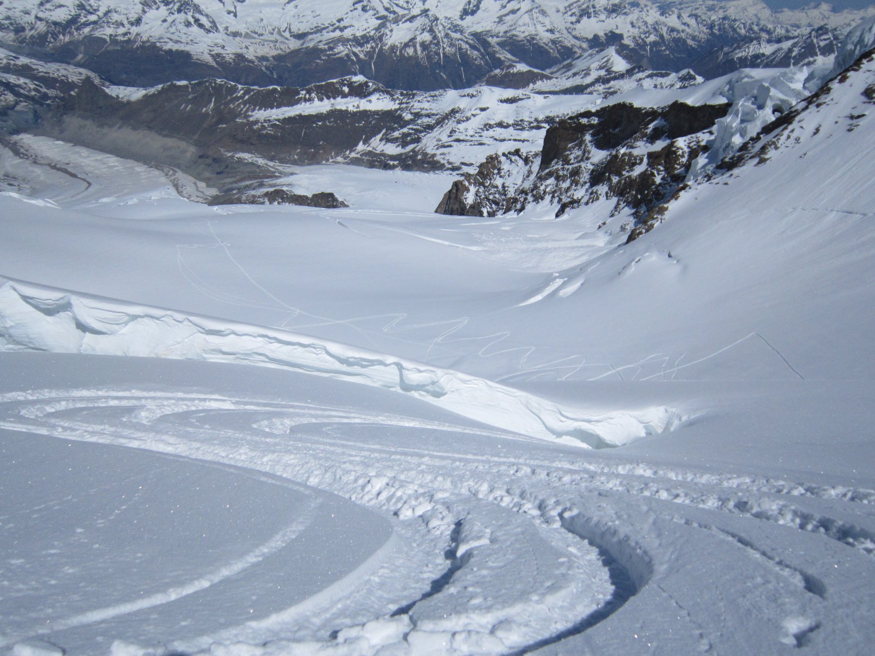 | mauroq | Uno sguardo alla meta dalla MonterosaH. | mauroq | Inizio giornata con Luna dietro al Polluce | mauroq | Primi raggi di sole | mauroq | Il plateau a circa 4100m | mauroq | Dalla cresta in discesa | mauroq | Nordend | mauroq | Discesa | mauroq | Sulla via del ritorno
