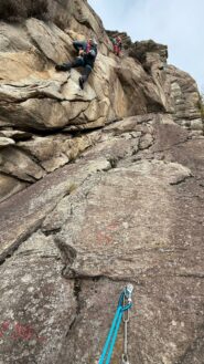 Oggi super affollamento quindi si ripiega su questa via. Parte bassa, cioè i primi 3 tiri prima del canale di trasferimento, sono placcosi su una…